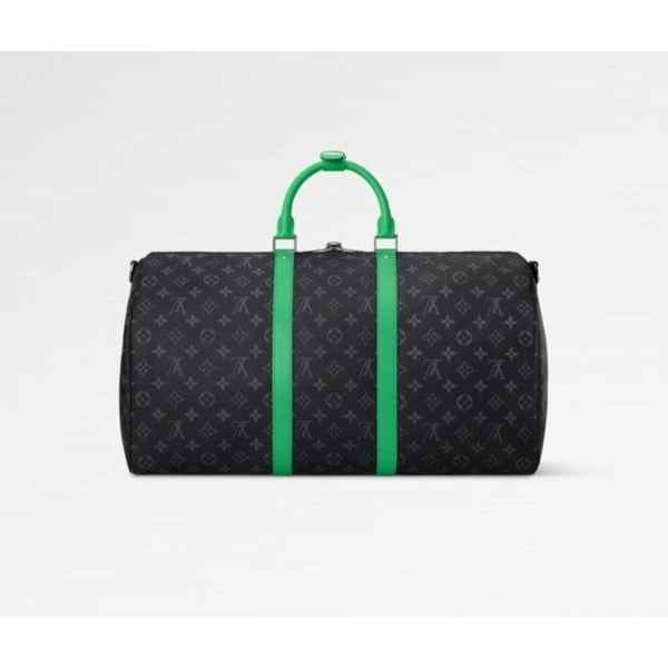 옆면 밴드와 상단 핸들의 생기 넘치는 색상으로 포인트를 더한 모노그램 이클립스 캔버스 소재의 키폴 반둘리에 50. 블랙 색상 텍스타일 소재의 안감. 내부 지퍼형 포켓. 탈착 가능한 조절형 스트랩을 활용해 숄더 백 또는 크로스 바디 백으로 연출할 수 있는 스타일. 넉넉하면서도 기내용 캐리어로 활용하기 좋은 컴팩트한 아이템.