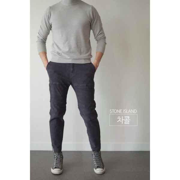 무릎 돌출방지 절개 디테일과 허벅지 부위에 가로와 세로 형태로 제작된 덮개 디테일이멋스런 제품입니다.