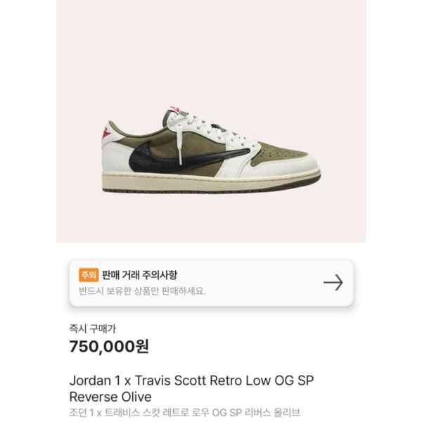 나** 조던1 X 트레비스스캇 리버스 올리브 요약정보 및 구매