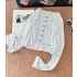 •블루 톤의 무드가 돋보이는 달콤하고 귀여운 미니 플라워 패턴입니다. 시각적으로 더 시원해 보이게 해주는 스타일로, 얇은 가디건 하나만으로도 분위기가 확 살아납니다. 정말 예쁘고 세련된 느낌이에요. 인스타에서 인기 많은 샤* 스타일의 꽃무늬 탑으로, 맞춤 제작한 원단과 단추 등 디테일이 정교합니다.