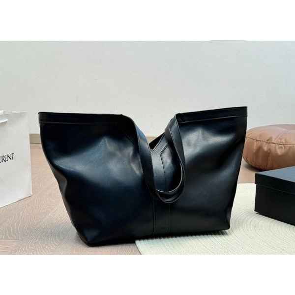 시그니처 장식이 돋보이는 Y로고 디자인 램스킨 소재의 토트백, 전체 가죽 안감 처리 생**