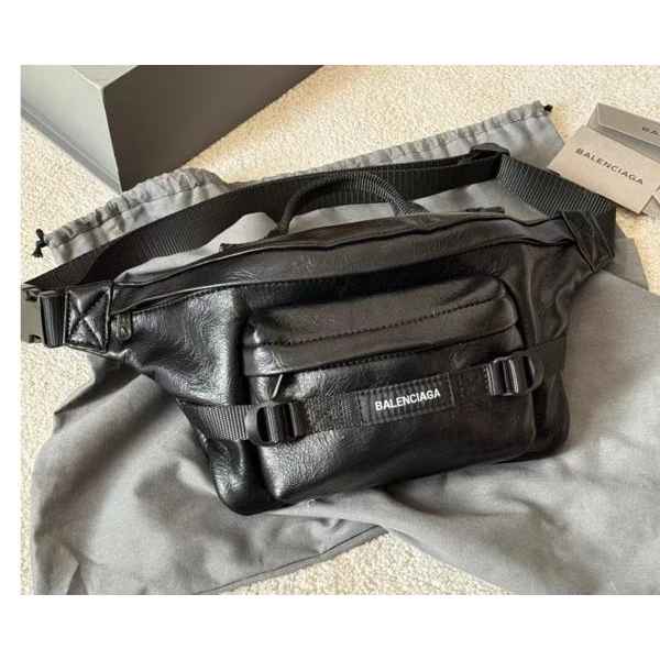 블랙 아레나 램스킨 소재의 아미 벨트백 라지