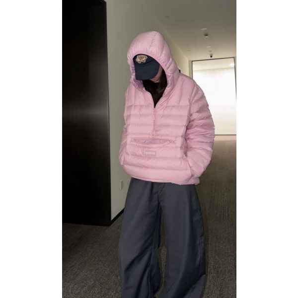 •Supre** FW WEEK6 마이크로 다운 하프 지퍼 후드 풀오버(짜임 로고 라벨 장착) 반지퍼 형태의 립(퀼팅) 다운 재킷, 남녀 공용입니다. 충전재는 90% 화이트 덕다운을 사용했고, 모든 디테일은 원본과 1:1로 재현되었습니다. 원단·지퍼·색상 등 부자재는 맞춤 제작되어 매장 진열용 오리지널과 구분 없이 착용하실 수 있는 수준입니다. 색상은 블랙·핑크·그레이이며 전체적으로 넉넉한 루즈핏입니다.