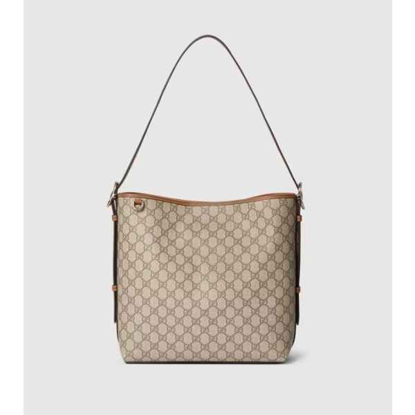 GG 엠블럼 컬렉션은 하우스의 우아함과 장인 정신의 역사를 재해석합니다. 웹(Web) 코튼 안감, 내부 컴파트먼트와 기능성 디자인이 특징인 버킷 실루엣.