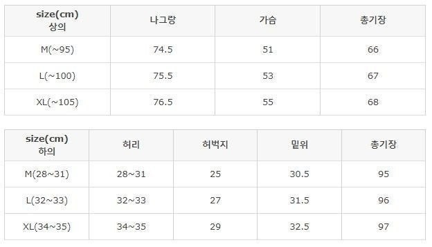 상의 : M(95), L(100), XL(105), 2XL(110)