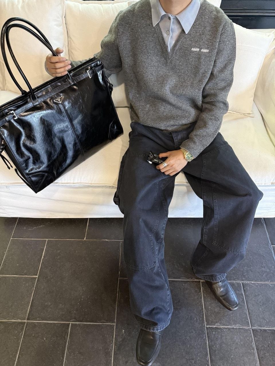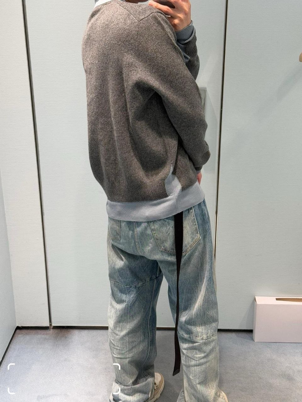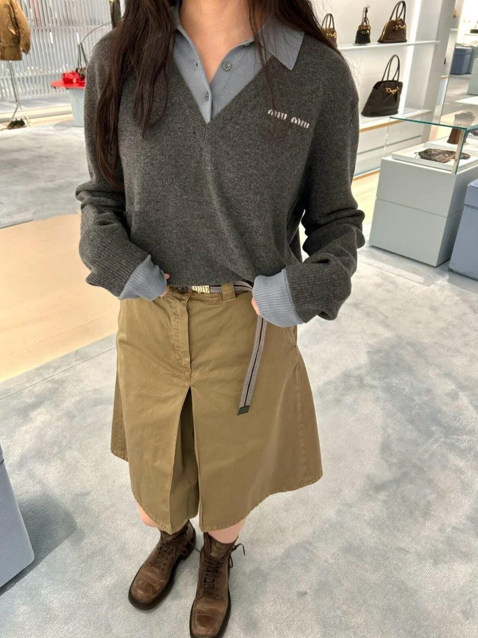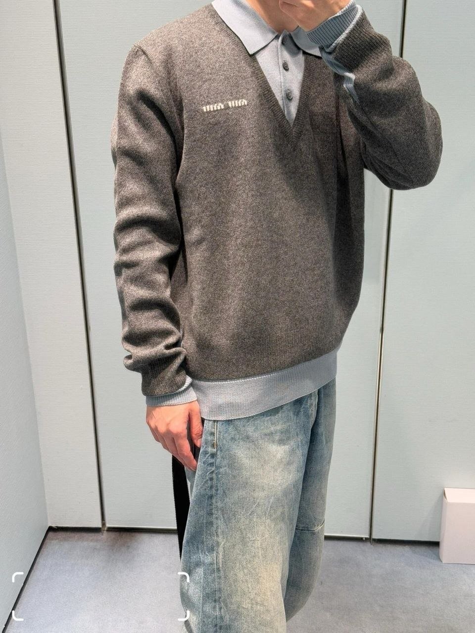 •Mi* Mi*(미***) FW 시즌의 울 혼방 모란디 톤 폴* 카라 배색 스타일의 레이어드 효과 롱슬리브 니트로, 남녀 공용으로 착용 가능한 제품입니다. 오리지널과 동일한 울 혼방 원사를 사용했으며, 세 가지 소재를 조합해 피부에 닿는 감이 부드러운 텐셀, 엄선된 울, 광택이 도는 실크를 더해 원단의 드레이프감과 고급스러움을 살렸습니다. 울 혼방 원사 구성은 울 35%, 면 45%, 나일론 20%로, 원단의 흐르는 느낌과 착용감을 높이기 위해 배합한 비율입니다.