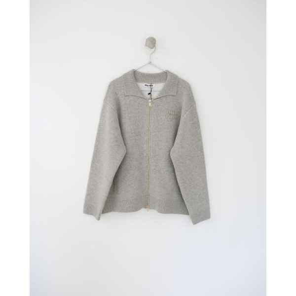 •Mi* Mi*(미***) FW 따뜻한 톤의 로고 패치 자수 장식 울 카라 지퍼 롱슬리브 가디건(재킷)입니다.