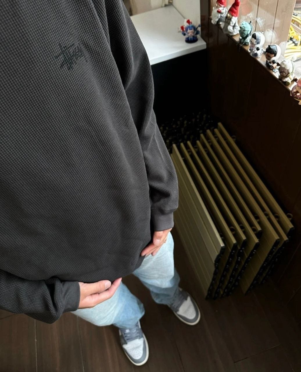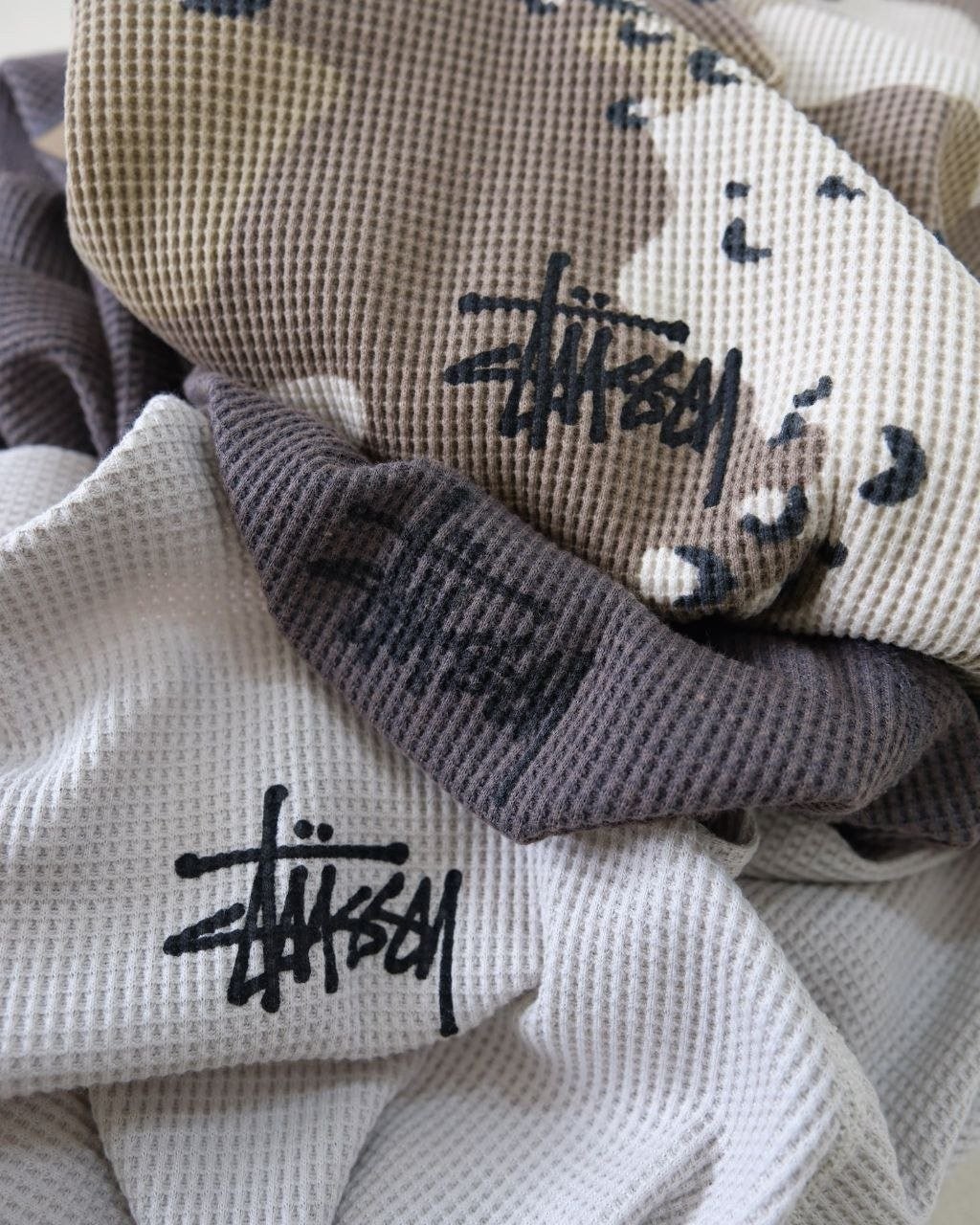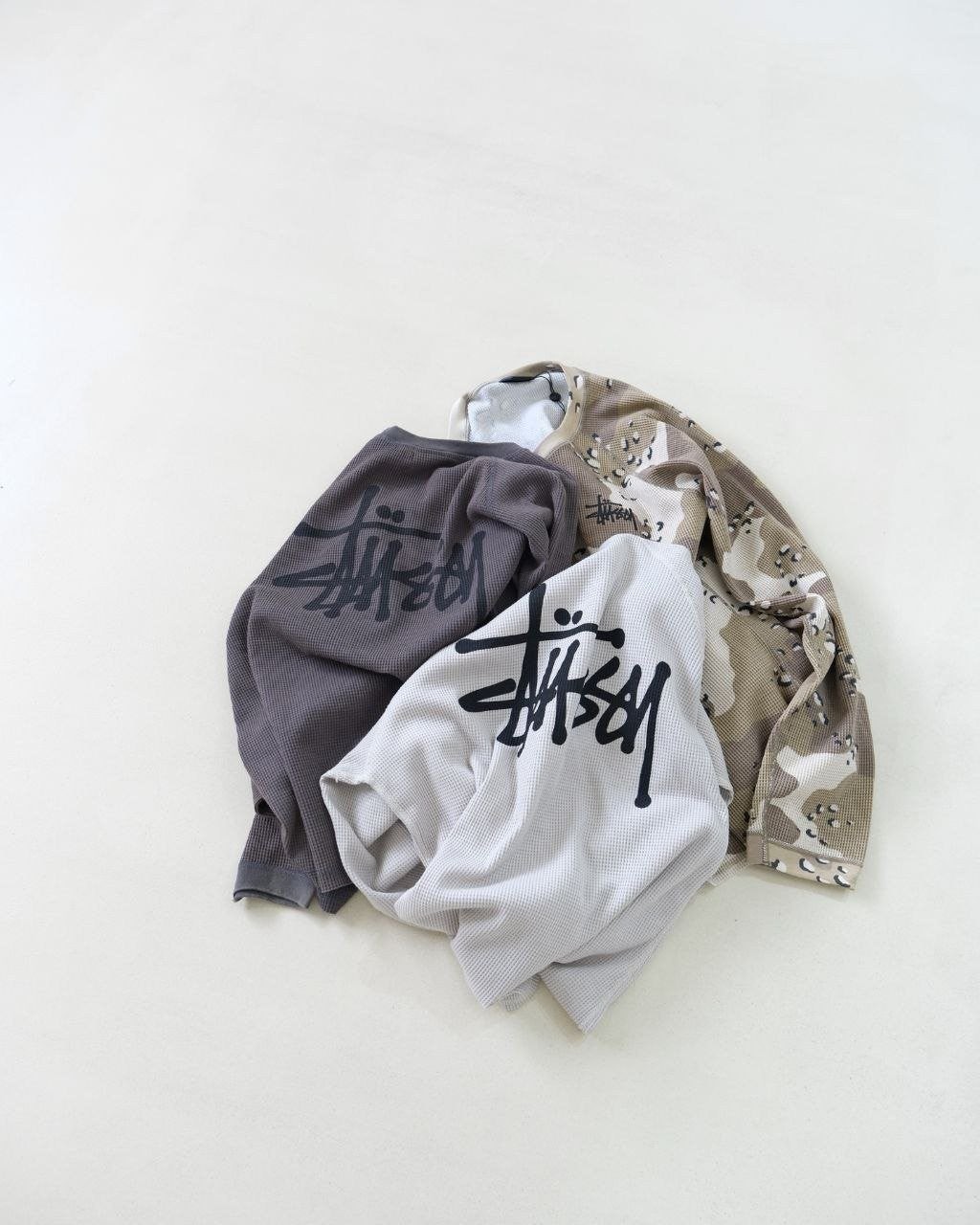 •Stus** 가을 컬렉션 로고 래글런 슬리브 와플 롱슬리브 티셔츠 (유니섹스) 오리지널을 분해 분석해 개발했으며, 작은 로고 패치·넥 라벨·워싱·행택을 1:1로 커스텀 재현했습니다. 와플 원단을 사용해 일정한 신축성과 도톰함이 있으며, 통기성과 드레이프가 좋아 피부에 부드럽고 포근하게 닿습니다. 전체 실루엣은 레귤러핏에 가깝게 약간 넉넉한 핏이며, 래글런 소매 설계로 체형 보정과 수용성이 좋아 다양한 체형에 잘 어울립니다. 로고 프린트는 정밀 공법으로 원단과 일체감 있게 표현되었고, 살짝 빈티지 워싱된 듯한 효과로 자연스럽고 레트로한 무드를 연출합니다.