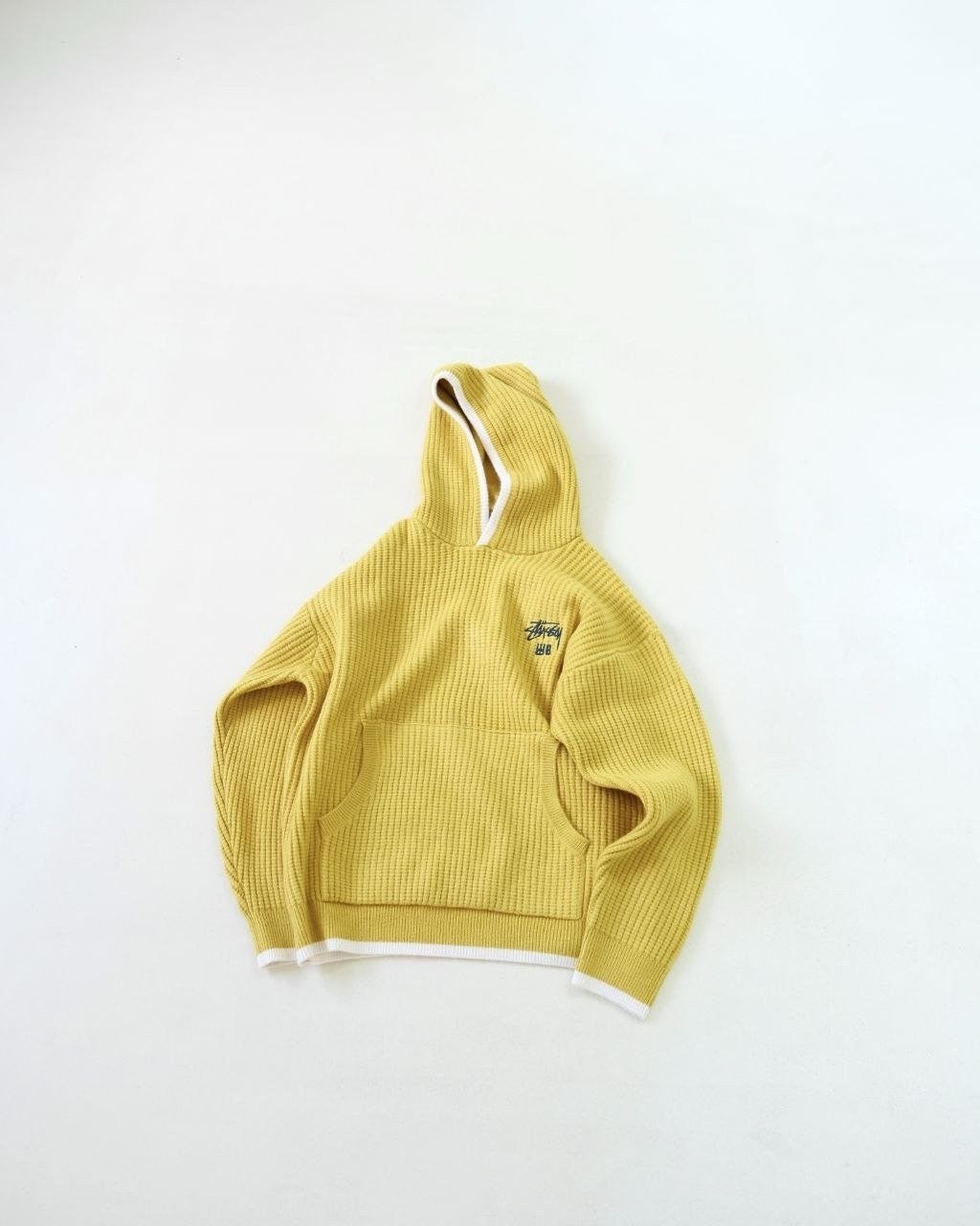 •Stus**(스투*)와 Wales Bonner(웨일즈 보너)의 FW25 컬래버레이션 캐시미어 후디 스타일 로고 니트로, 로고가 포인트인 편안한 후드형 와플 조직 니트입니다. 맞춤 제작한 면 혼방 니트 원단을 사용해 한 벌당 무게가 무려 1,000g에 달하는 중량감 있는 제품이며, 오리지널 편직 방식 그대로 재현해 촉감이 부드럽고 까칠하지 않아 민감한 피부에도 부담이 없습니다. 전체적으로 여유 있는 루즈 실루엣으로 성별에 구애받지 않고 멋스럽게 착용할 수 있게 정교하게 패턴이 재단되어 있습니다. 공식 홈페이지와 동일한 맞춤 부자재(세탁 라벨·넥라벨·행택 등)까지 모두 재현해 1:1 제품 입니다.