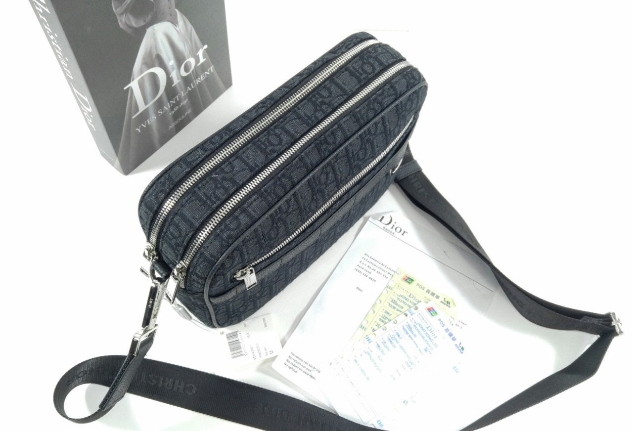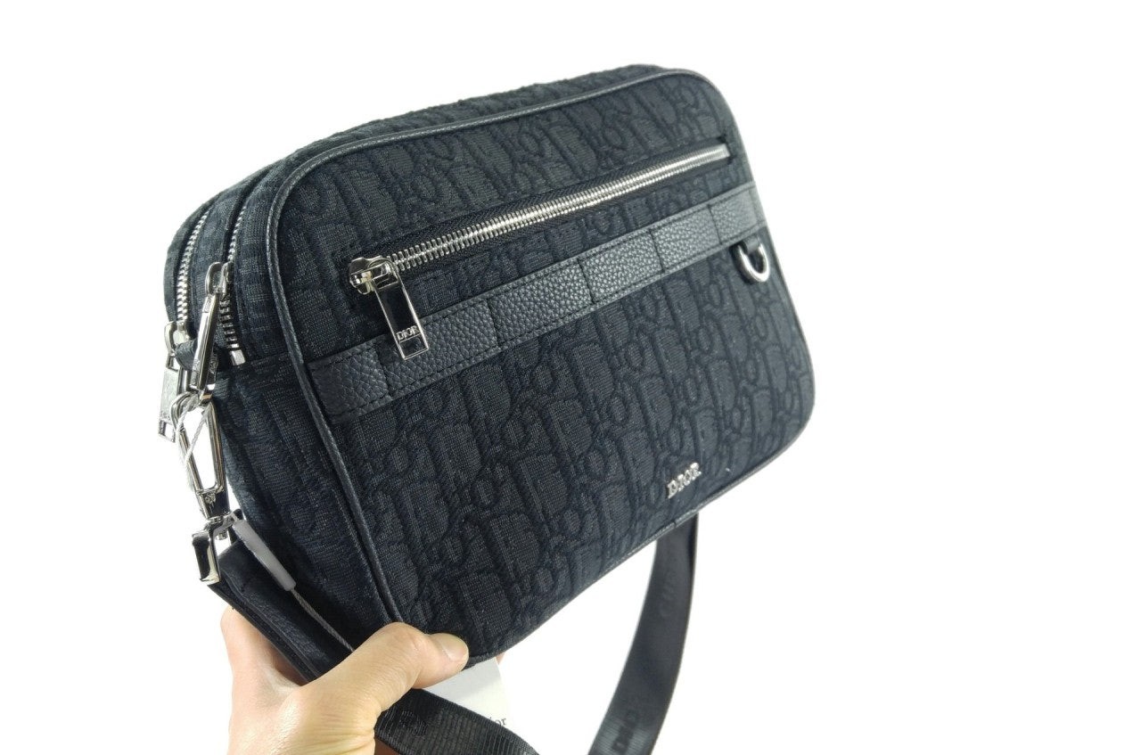 실용적인 맥시 실루엣으로 새롭게 선보이는 홀마크 사파리 메신저 백입니다. 블랙 컬러의 Di*r Oblique 자카드 소재로 제작되었으며 블랙 그레인 송아지 가죽 디테일로 완성되었습니다. 지퍼 수납공간 2개, 앞면 포켓, 카드 슬롯에 모든 데일리 소지품을 간편하게 보관할 수 있습니다. 길이 조절 가능한 탈착식 Chr*stian Di*r 숄더 스트랩으로 구성되어 클러치, 숄더백, 크로스백으로 스타일링하기 좋습니다.