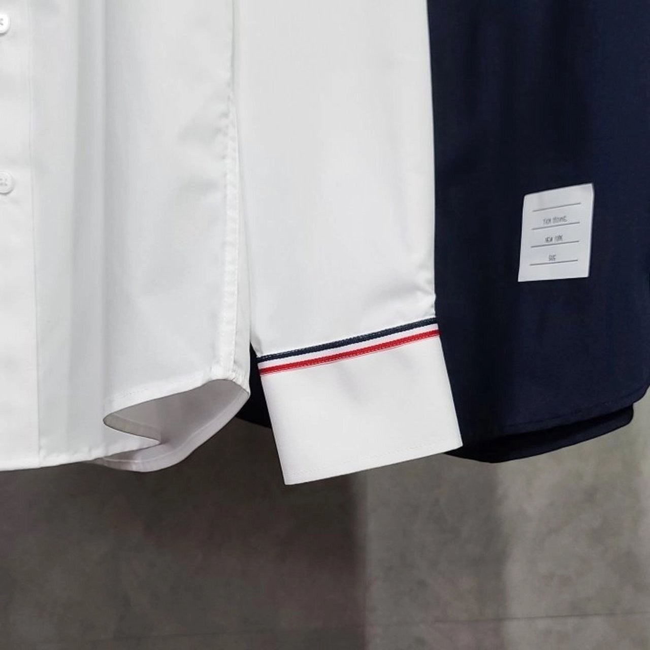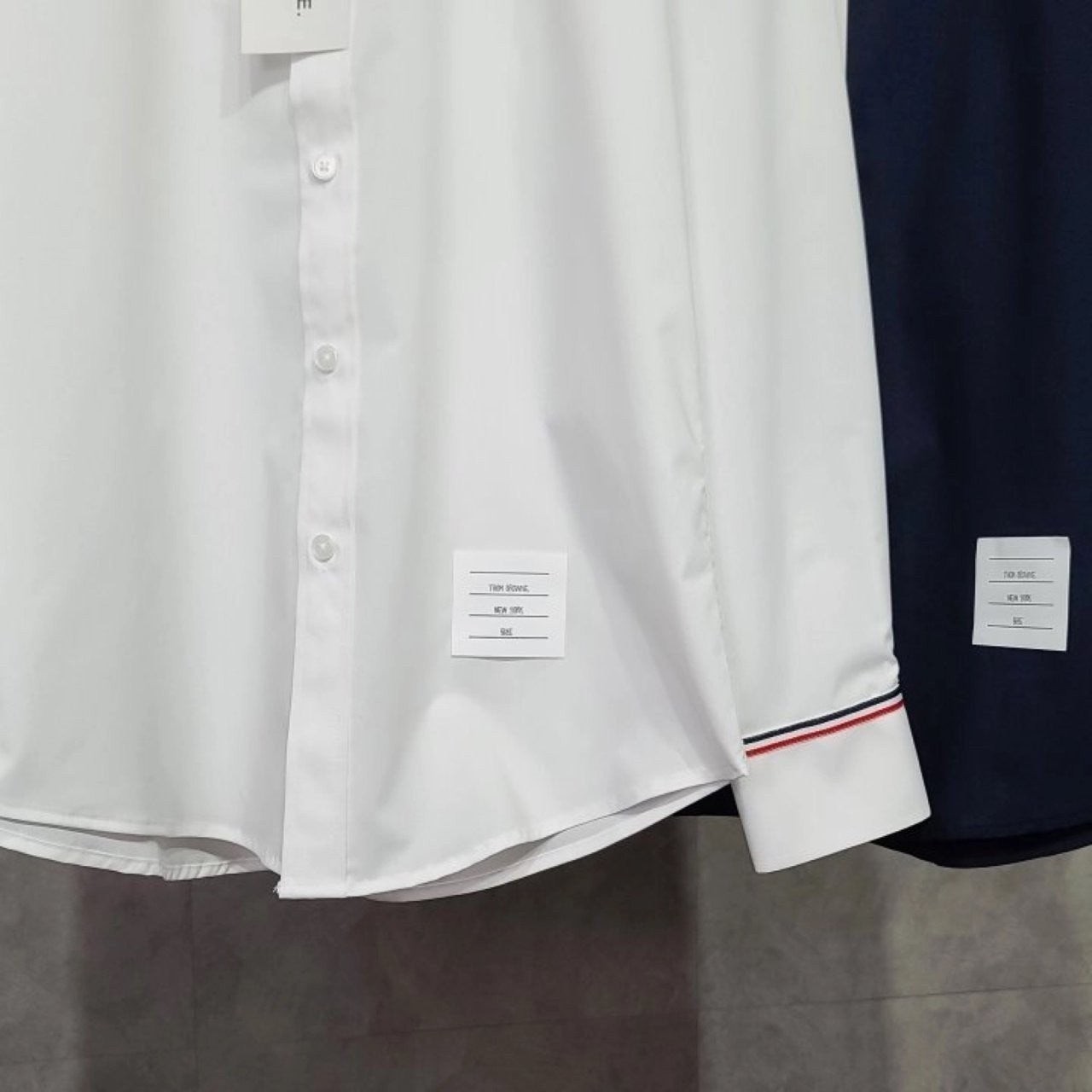 카라와 소매에 톰*사 만의 트레이드마크인 삼색선을 이용하여 포인트를 주었으며
