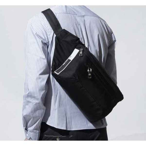 리나일론 개버딘 패브릭과 사피아노 가죽으로 제작한 숄더백