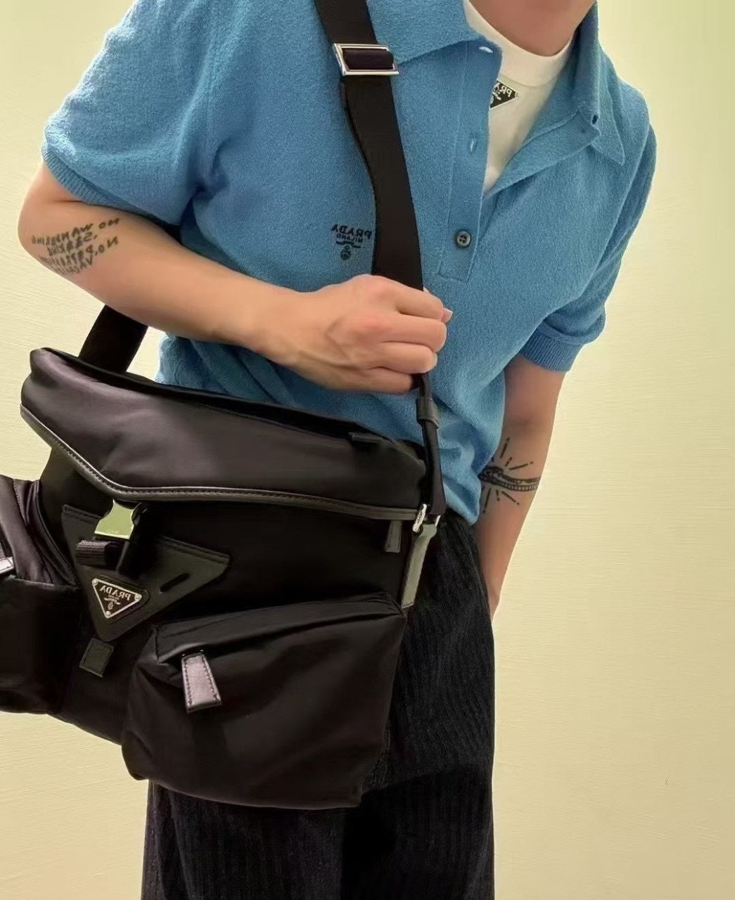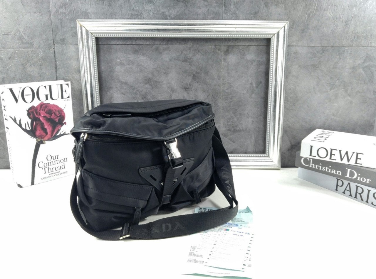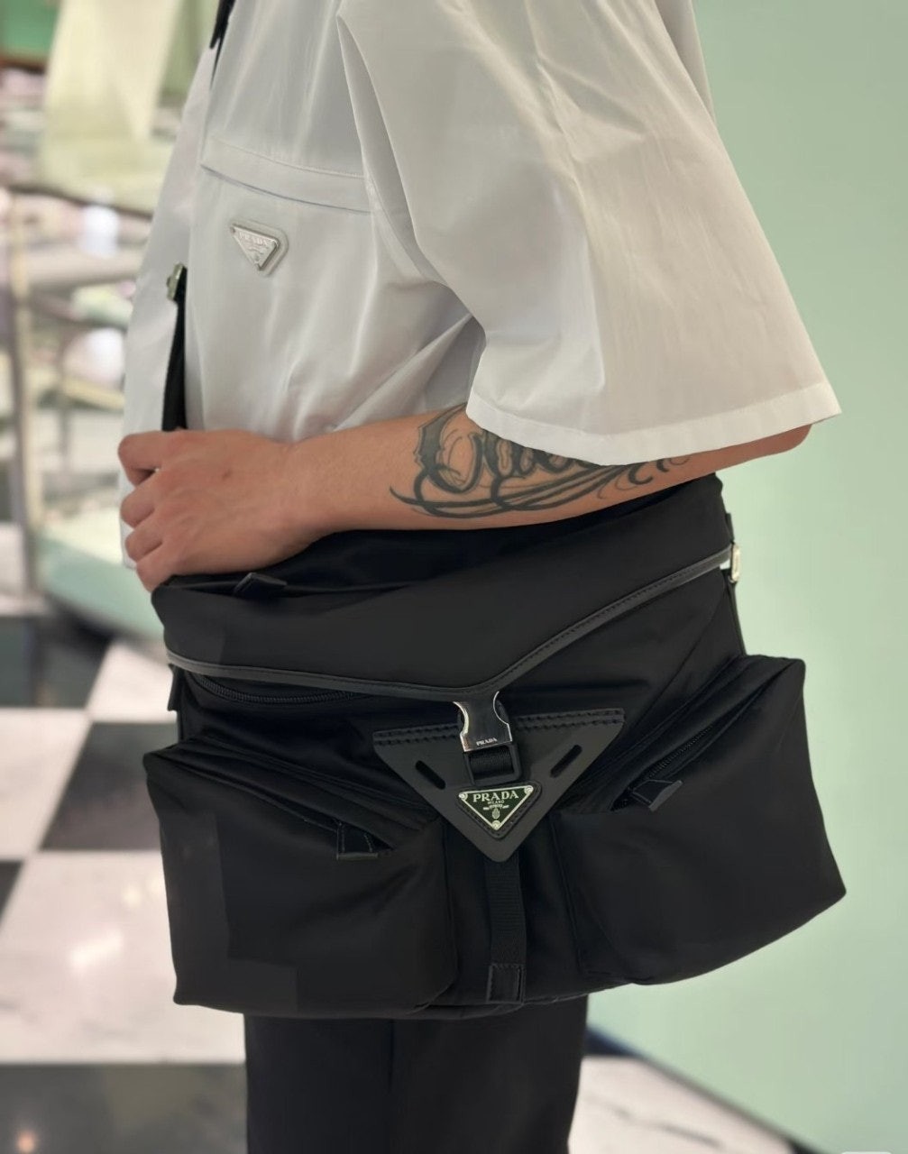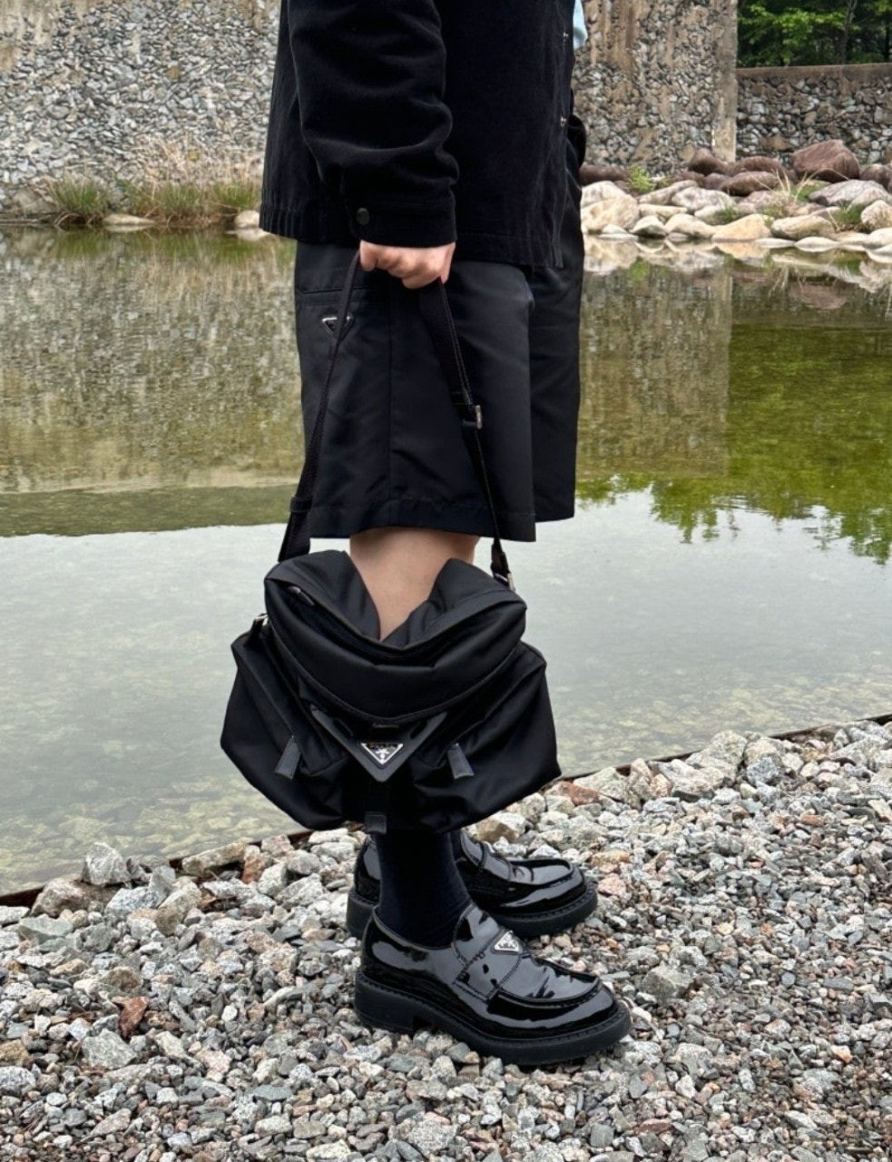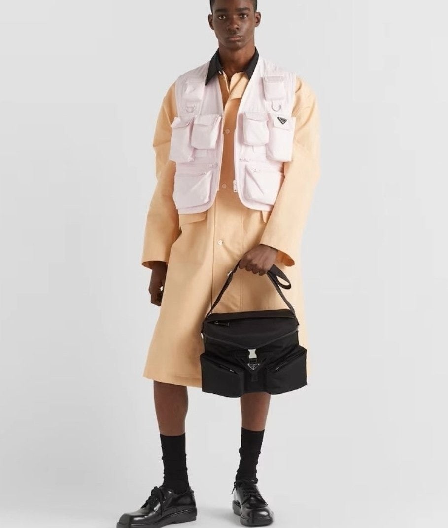 프**의 양면적인 감성이 담긴 이 숄더백은 세련된 미학과 기능성을 겸비한 모던하고 하이브리드적인 디자인을 자랑합니다. 브랜드 고유의 재생 나일론 소재인 리-나일론(Re-Nylon)으로 제작된 이 가방은 가죽 디테일과 트림으로 더욱 돋보이는 기하학적 라인을 강조했습니다. 건축적인 볼륨감을 자랑하는 이 가방은 중앙의 가죽 삼각형을 감싸는 듯한 사선형 디자인의 넉넉한 유틸리티 포켓과 아이코닉한 에나멜 메탈 삼각형 로고로 포인트를 더했습니다.