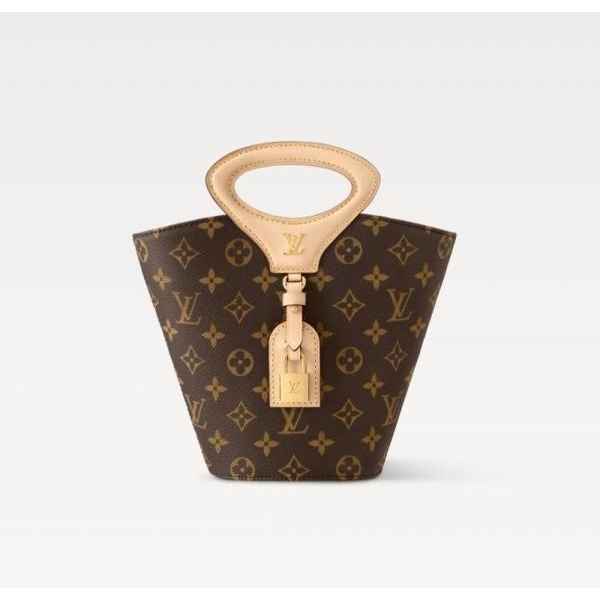 니콜라 제스키에르가 2025 봄-여름 패션쇼에서 선보인 리바주 BB(Rivage BB). 루*의 헤리티지를 기리며 1999년 출시된 녹탕뷜 핸드백을 재해석한 버킷 모양의 실루엣. 트렁크 핸들, LV 각인을 더한 패드락, 가죽 소재의 러기지 택 등 하우스의 다양한 시그니처를 더한 모노그램 캔버스 소재의 디자인. 스트랩을 연결하여 크로스 바디 백으로 연출할 수 있는 아이템.