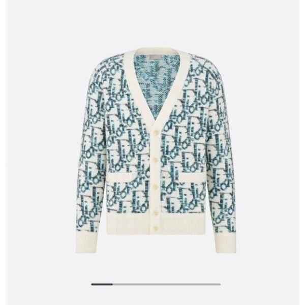 디*올 하우스의 홀마크 Di*r Oblique 모티브를 새롭게 해석한 니트 가디건입니다. 화이트와 블루 컬러가 어우러진 버진 울 자카드 소재의 캐주얼한 실루엣으로 버튼 클로저와 리브드 디테일이 디자인을 완성합니다. 다양한 룩에 매치해 그래픽적인 무드를 더할 수 있습니다.