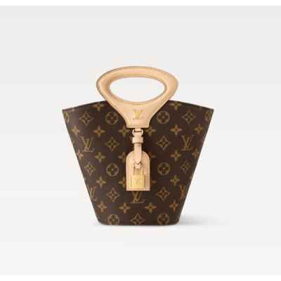 니콜라 제스키에르가 2025 봄-여름 패션쇼에서 선보인 리바주 BB(Rivage BB). 루*의 헤리티지를 기리며 1999년 출시된 녹탕뷜 핸드백을 재해석한 버킷 모양의 실루엣. 트렁크 핸들, LV 각인을 더한 패드락, 가죽 소재의 러기지 택 등 하우스의 다양한 시그니처를 더한 모노그램 캔버스 소재의 디자인. 스트랩을 연결하여 크로스 바디 백으로 연출할 수 있는 아이템.