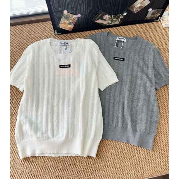 •Mium*u (미우미*) 25 신상 로고 레이스 패턴 오픈워크 니트 반팔, 강력하게 돌아온, 거리를 압도할 니트웨어입니다. 패셔너블하고 세련된 스타일링으로, 가득한 고급스러움과 순수한 미니멀리즘 스타일을 연출합니다. 은은한 패턴의 작은 오픈워크 디자인이 특징입니다. 여름 날씨에 마치 구름처럼 가벼움, 흰색 니트는 절제된 부드러움과 흘러가는 듯한 시원함, 자유로운 통기성을 선사합니다. 깨끗하고 산뜻하며, 고급스러운 여유로움이 가득합니다.