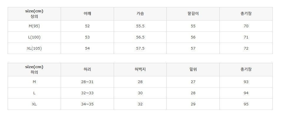 상의 : M(95), L(100), XL(105), 2XL(110)