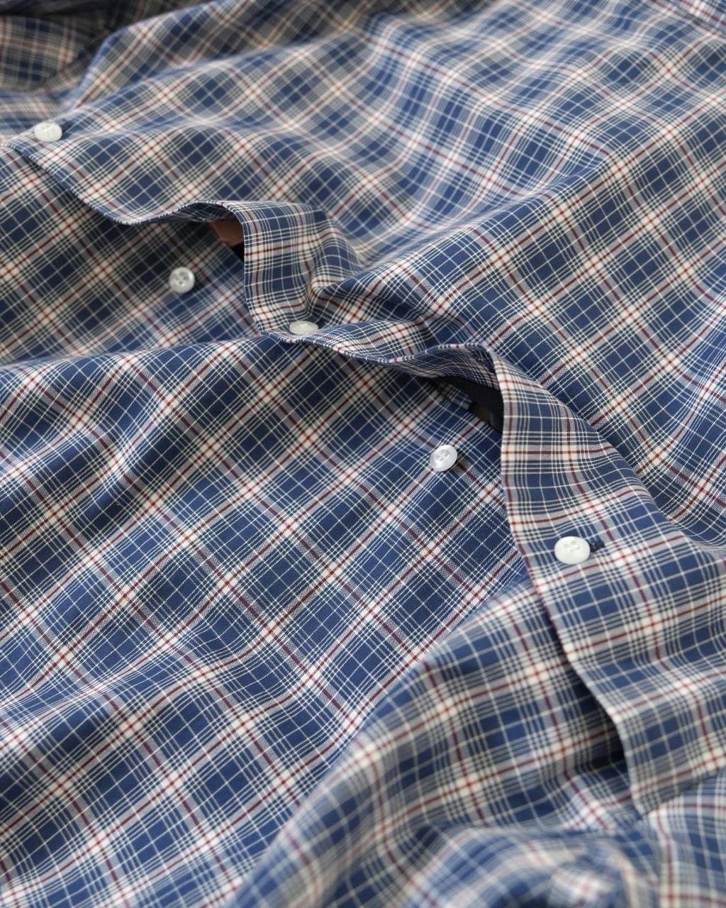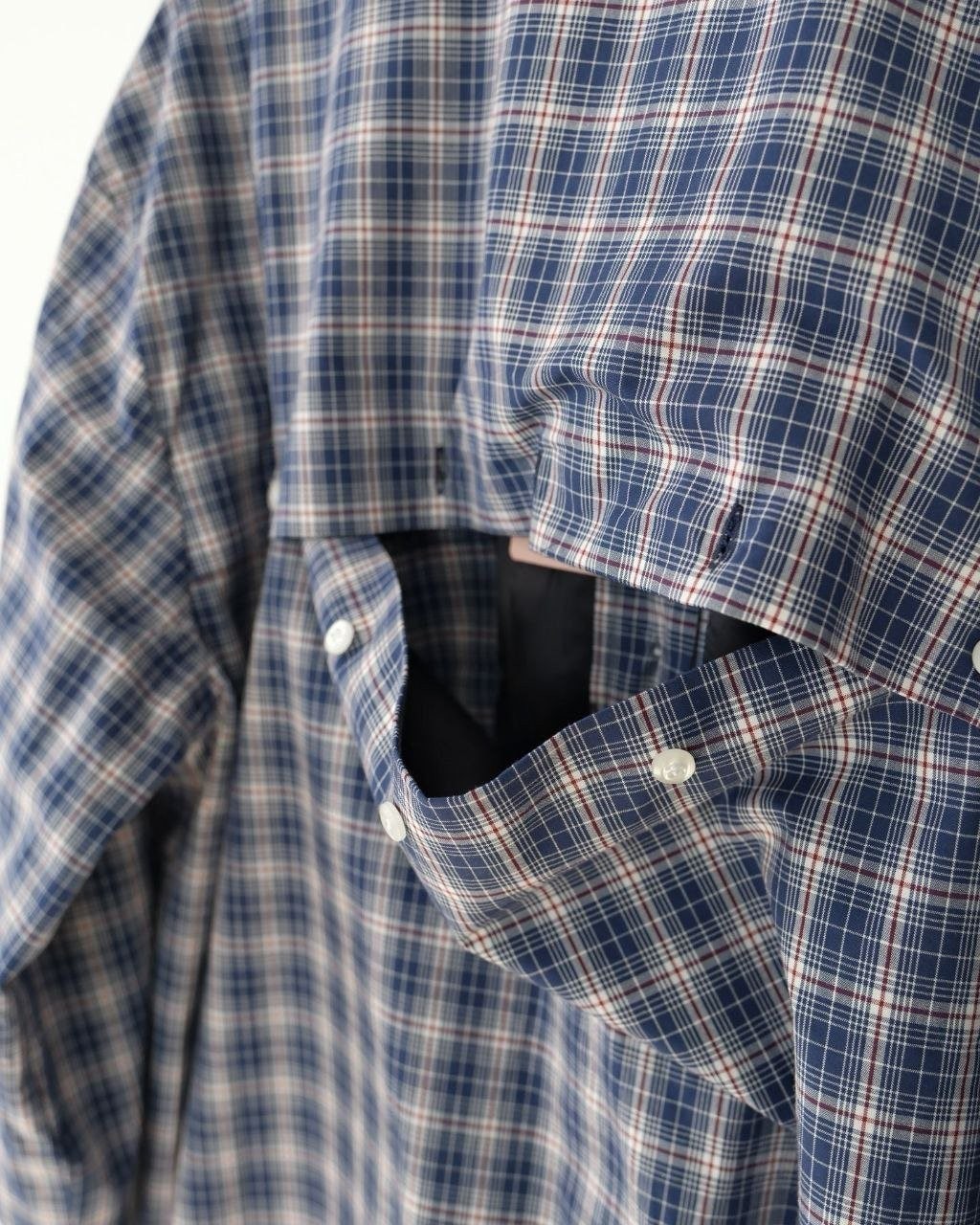•적외선 포지셔닝으로 체크 패턴을 정밀하게 맞춘 고정밀 재단을 적용했으며(섬세한 체크 배열을 위해 원단 소모가 큽니다.), 모든 원단은 샌드 워싱을 거쳐 촉감이 부드럽고 질감이 좋아졌습니다. 변형이 적고, 수축과 변색을 최소화해 오랜 시간 깔끔한 상태를 유지합니다.