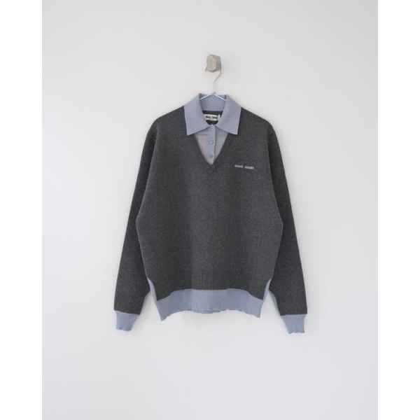 •Mi* Mi*(미***) FW 시즌의 울 혼방 모란디 톤 폴* 카라 배색 스타일의 레이어드 효과 롱슬리브 니트로, 남녀 공용으로 착용 가능한 제품입니다. 오리지널과 동일한 울 혼방 원사를 사용했으며, 세 가지 소재를 조합해 피부에 닿는 감이 부드러운 텐셀, 엄선된 울, 광택이 도는 실크를 더해 원단의 드레이프감과 고급스러움을 살렸습니다. 울 혼방 원사 구성은 울 35%, 면 45%, 나일론 20%로, 원단의 흐르는 느낌과 착용감을 높이기 위해 배합한 비율입니다.