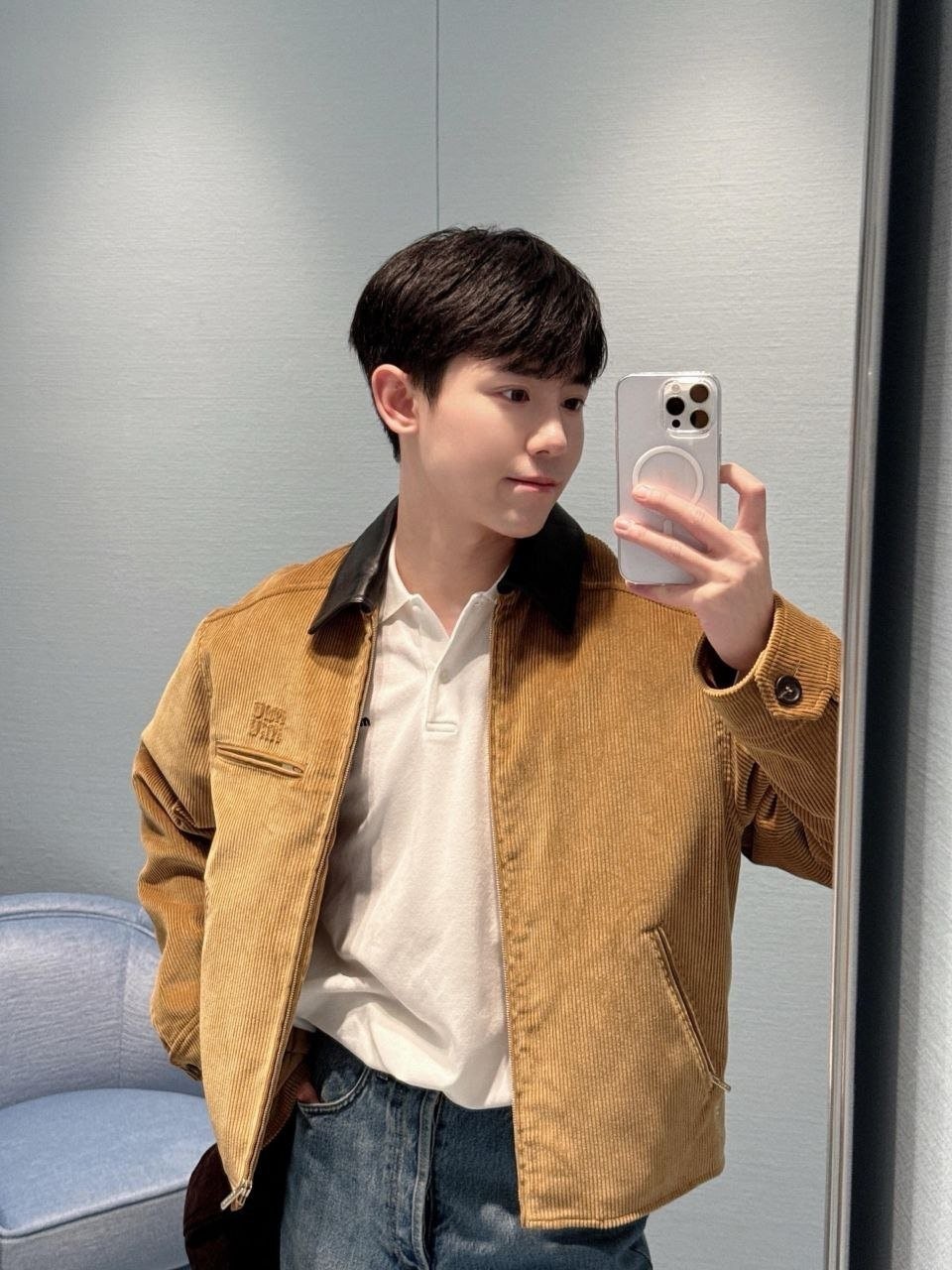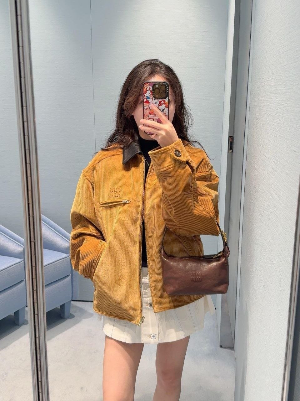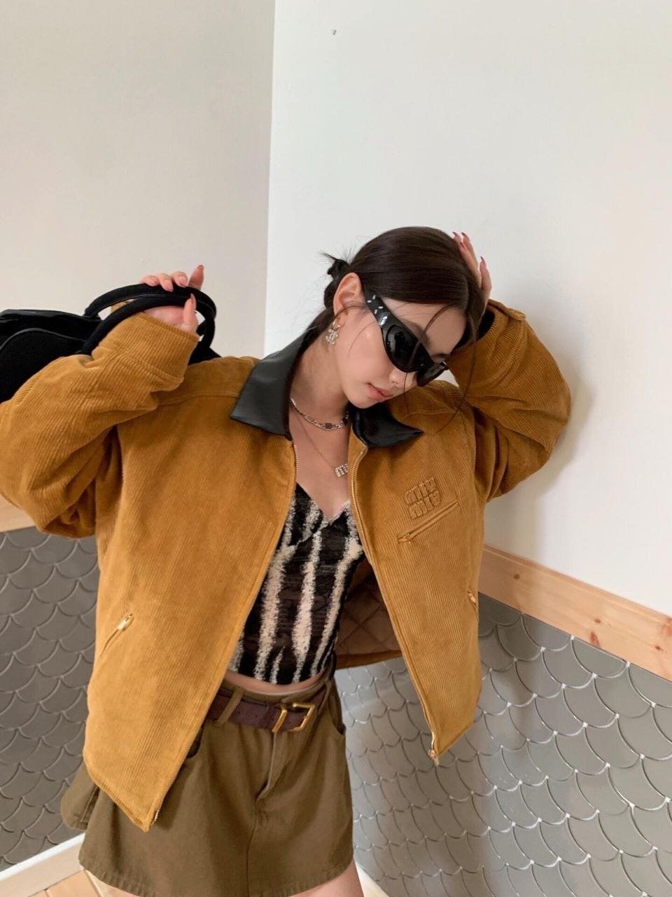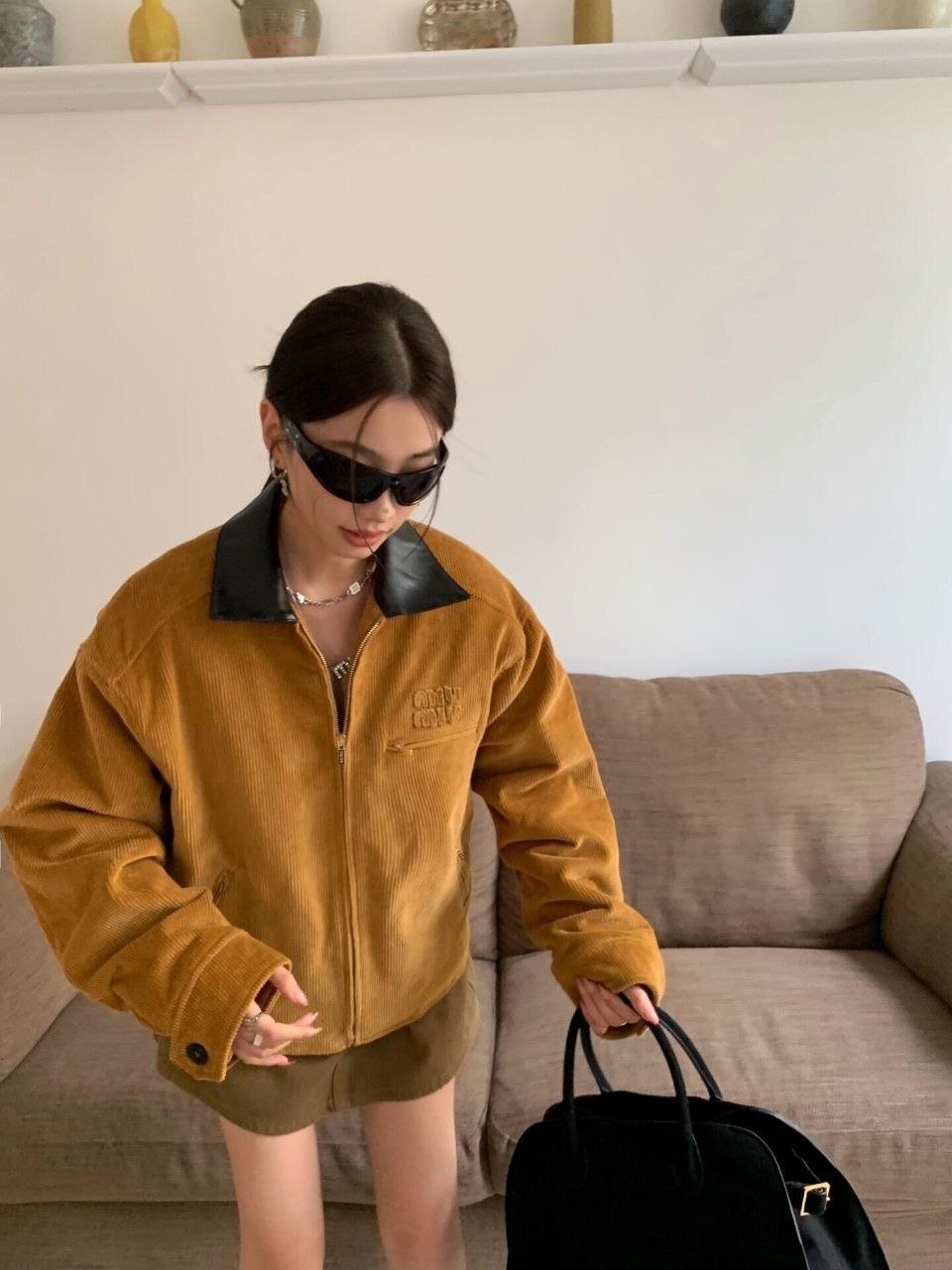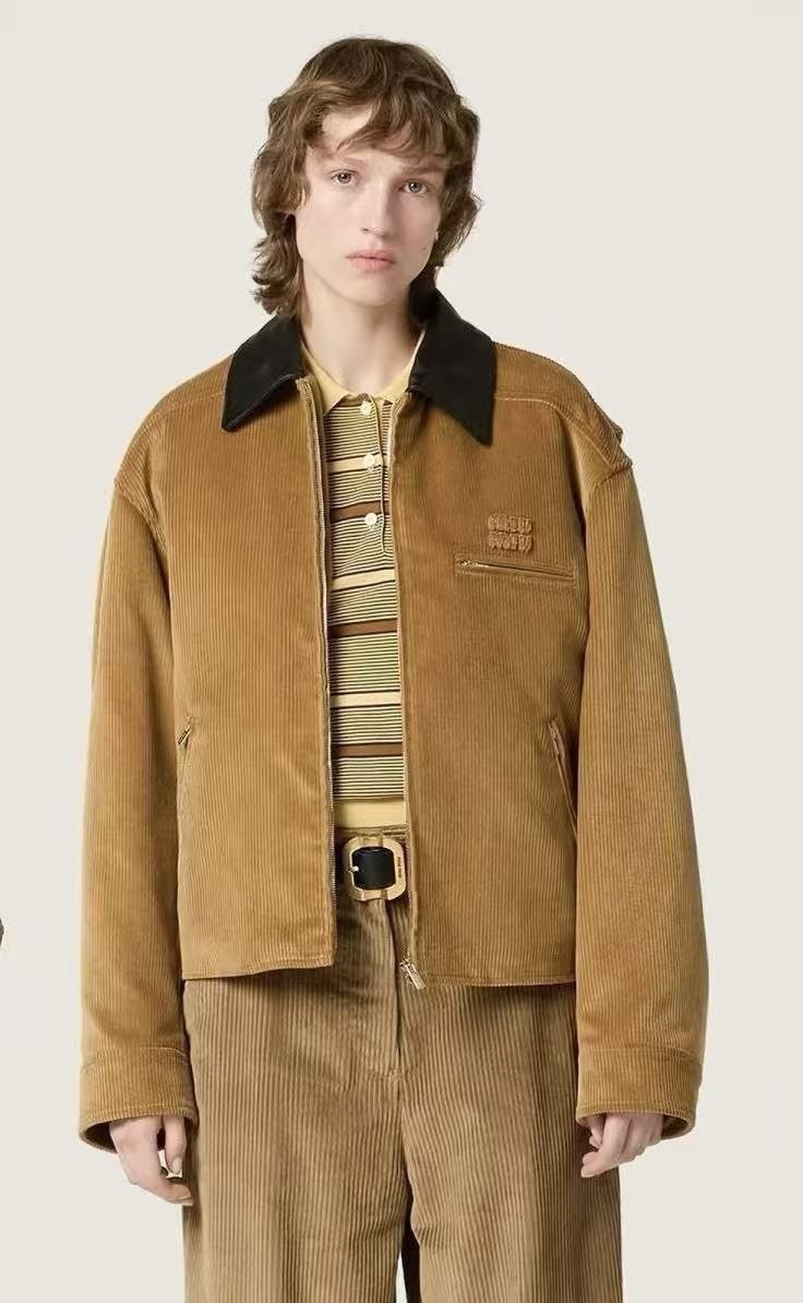•Mi* Mi*(미***) 25 멜라드 계열 코듀로이 자켓 패딩으로, 남녀 공용 오버사이즈 스타일입니다. 코듀로이 패딩인 이 제품은 멜라드 풍의 미우 디자인을 반영했으며, 작년 모델에 비해 실루엣을 더 여유 있게 수정해 오버사이즈 느낌이 강화되었고, 넥 라인에는 블랙 가죽 계열의 배색을 적용해 보다 빈티지한 무드를 살렸습니다.