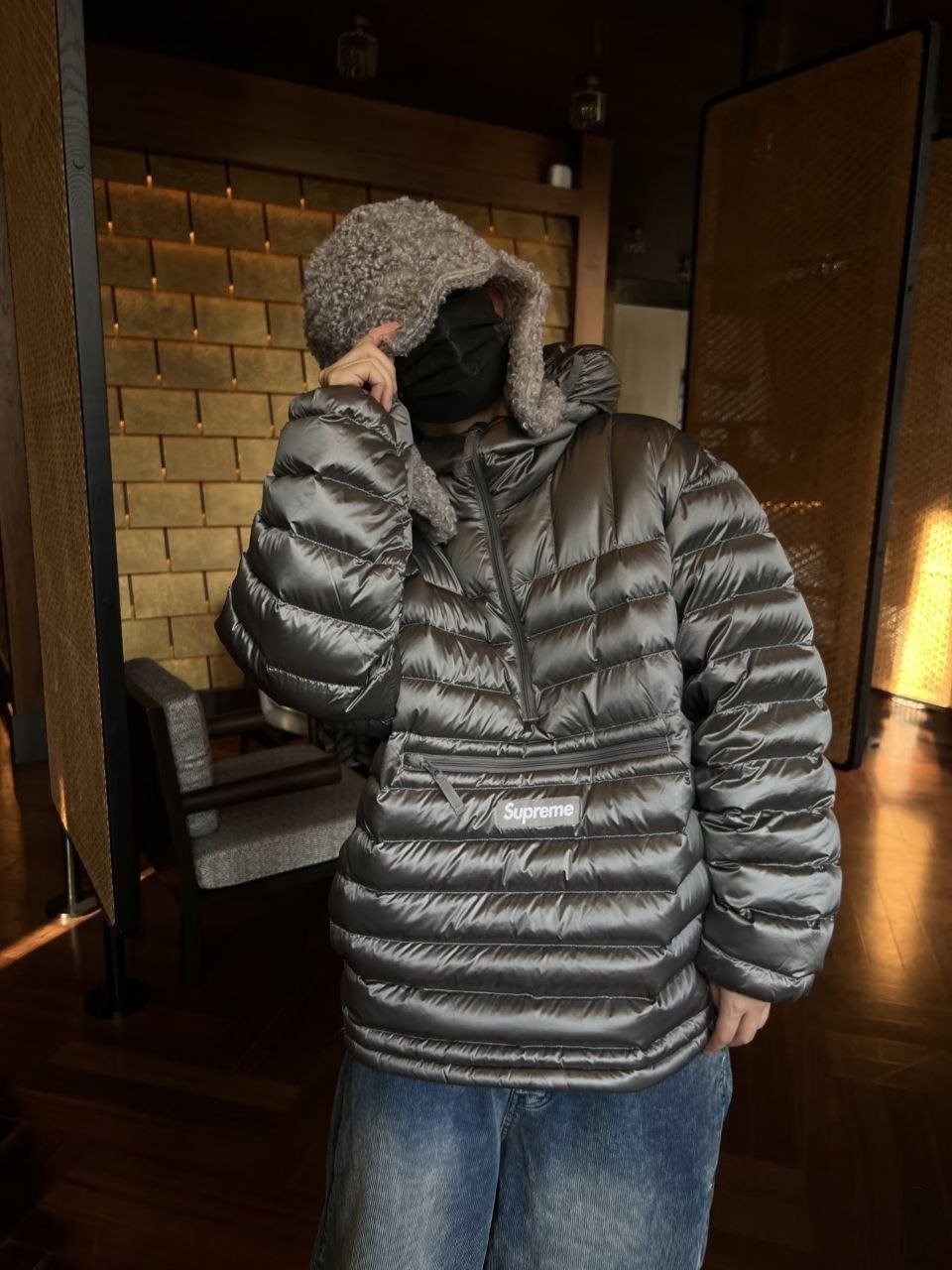 •Supre** FW WEEK6 마이크로 다운 하프 지퍼 후드 풀오버(짜임 로고 라벨 장착) 반지퍼 형태의 립(퀼팅) 다운 재킷, 남녀 공용입니다. 충전재는 90% 화이트 덕다운을 사용했고, 모든 디테일은 원본과 1:1로 재현되었습니다. 원단·지퍼·색상 등 부자재는 맞춤 제작되어 매장 진열용 오리지널과 구분 없이 착용하실 수 있는 수준입니다. 색상은 블랙·핑크·그레이이며 전체적으로 넉넉한 루즈핏입니다.