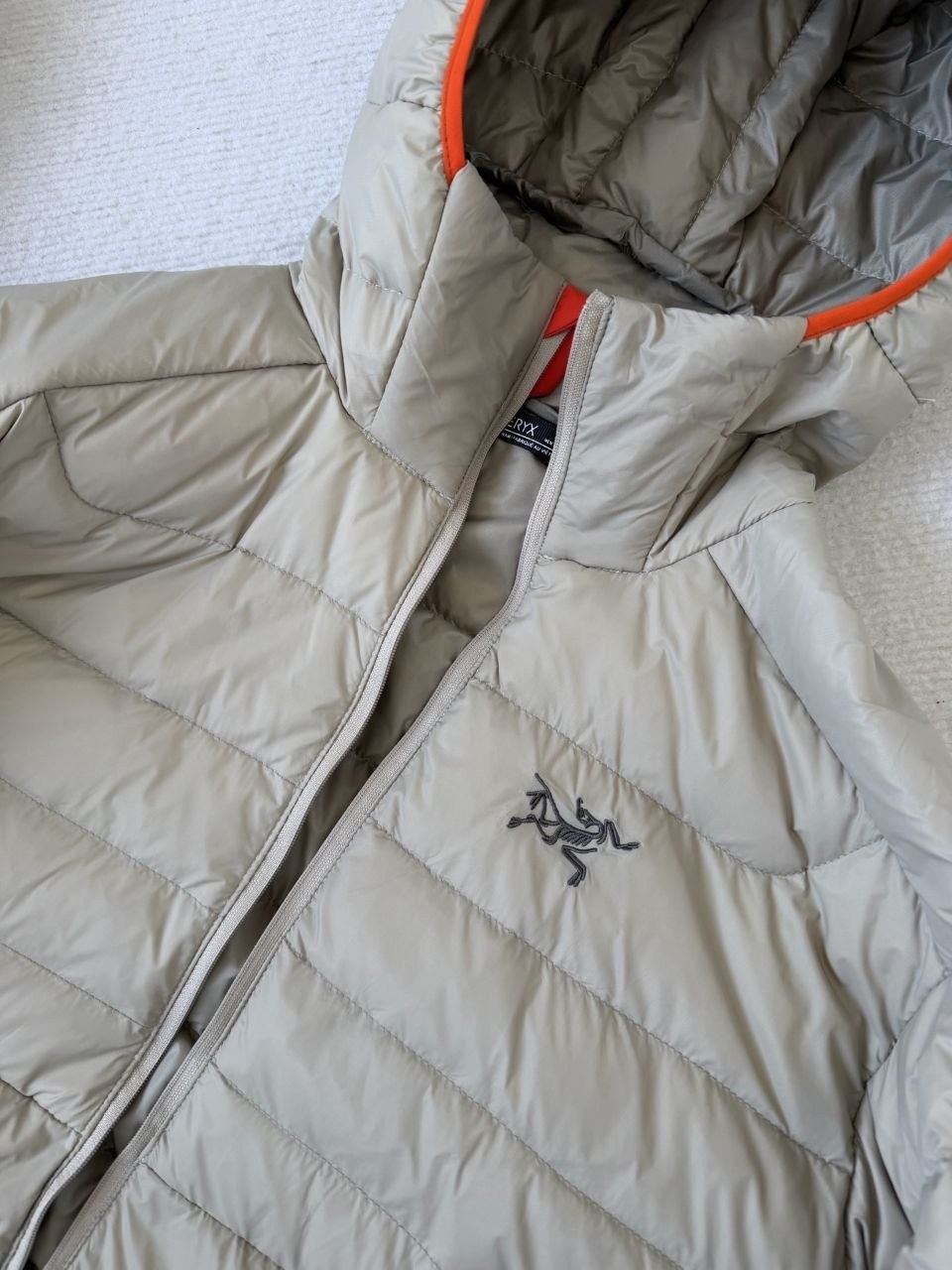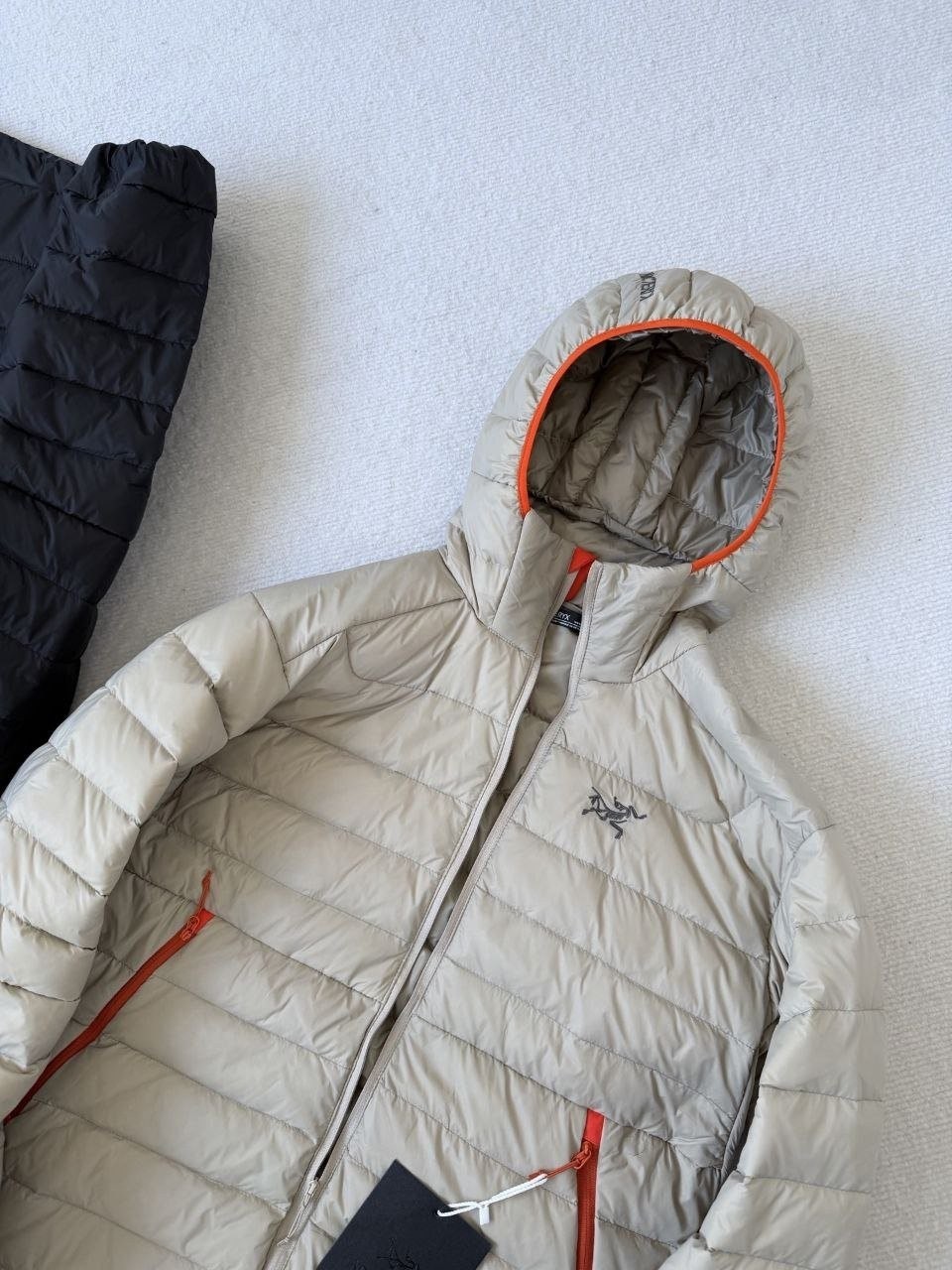 •숏한 경량 구스다운으로 전체 실루엣이 슬림하게 떨어져 부해 보이지 않으며 체형 수용성이 비교적 좋습니다. 입체 재단으로 몸에 잘 맞게 설계되었고, 앞은 다소 짧고 뒤가 긴 하이로우(앞짧뒤김) 형태로 레이어드 시에도 멋스럽습니다. 내부 충전은 섬세하고 부드러운 구스다운을 사용해 보온성이 우수하고 전체적으로 ‘무게감이 거의 없는’ 착용감을 제공합니다. 소매는 곡선형(벤팅된 칼날 느낌)으로 디테일이 우수하며 충전이 고르게 분포되어 편안한 착용감을 줍니다. 단독 착용 또는 베타LT 등 방수·방풍 아우터와의 레이어드 모두 활용 가능합니다.