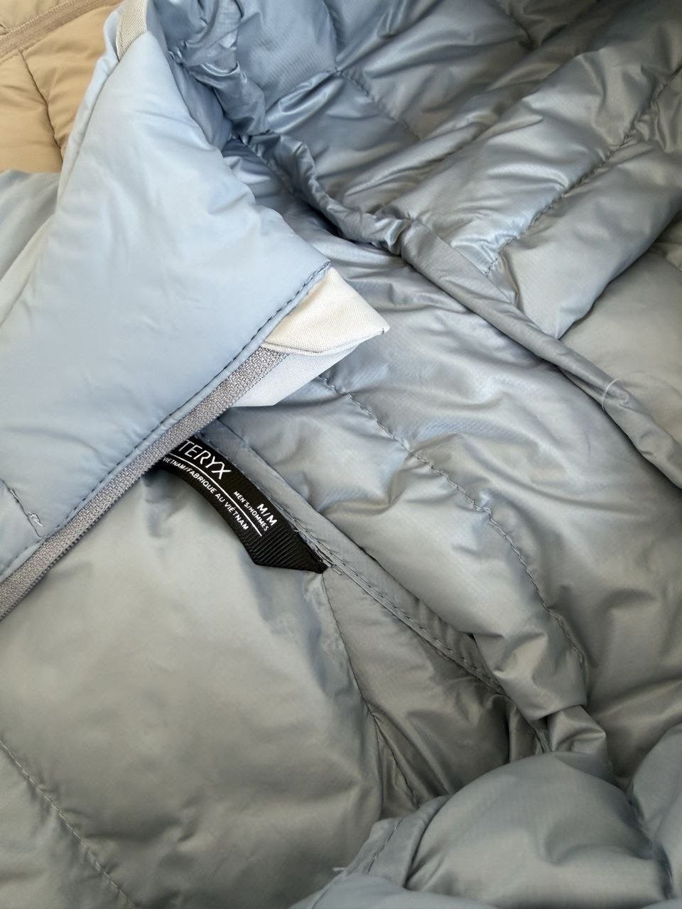 •숏한 경량 구스다운으로 전체 실루엣이 슬림하게 떨어져 부해 보이지 않으며 체형 수용성이 비교적 좋습니다. 입체 재단으로 몸에 잘 맞게 설계되었고, 앞은 다소 짧고 뒤가 긴 하이로우(앞짧뒤김) 형태로 레이어드 시에도 멋스럽습니다. 내부 충전은 섬세하고 부드러운 구스다운을 사용해 보온성이 우수하고 전체적으로 ‘무게감이 거의 없는’ 착용감을 제공합니다. 소매는 곡선형(벤팅된 칼날 느낌)으로 디테일이 우수하며 충전이 고르게 분포되어 편안한 착용감을 줍니다. 단독 착용 또는 베타LT 등 방수·방풍 아우터와의 레이어드 모두 활용 가능합니다.