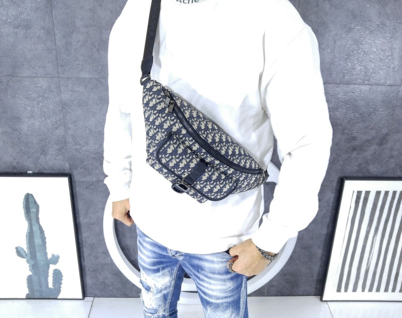 • 디* 8 벨트백 베이지  블랙 Di0r Oblique 자카드