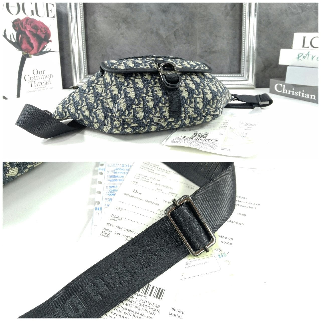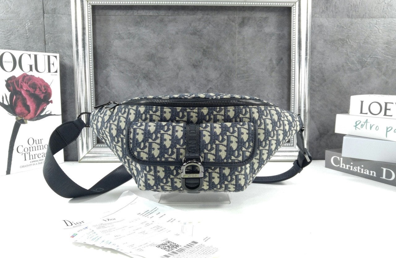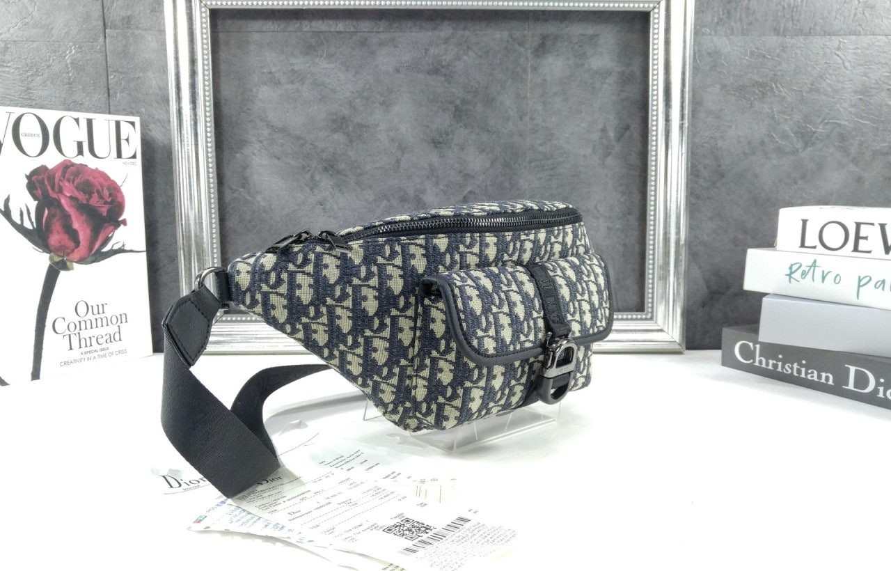 • 디* 8 벨트백 베이지 블랙 Di0r Oblique 자카드