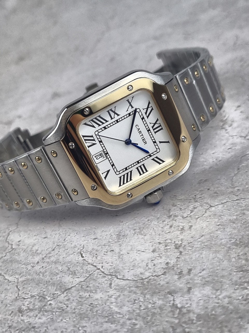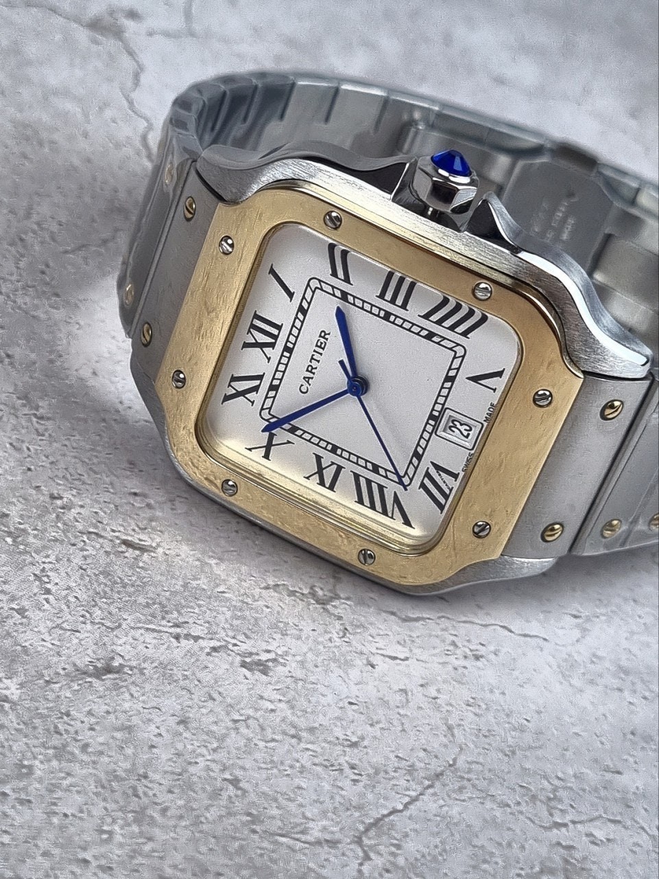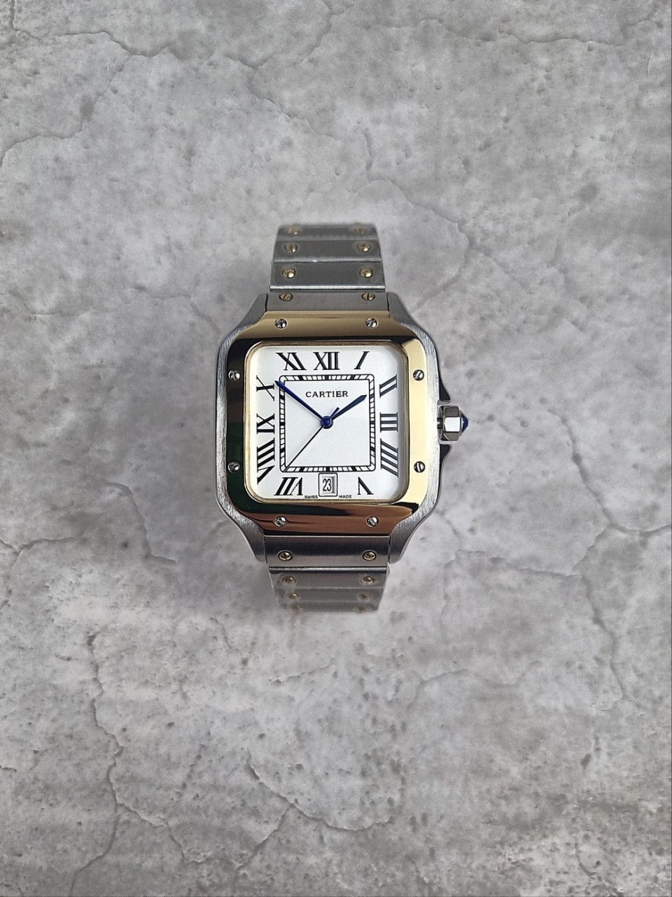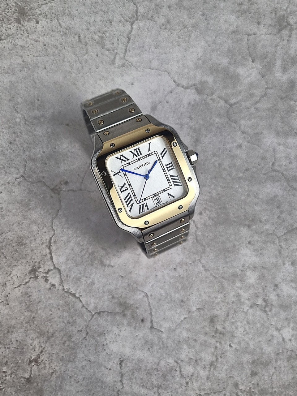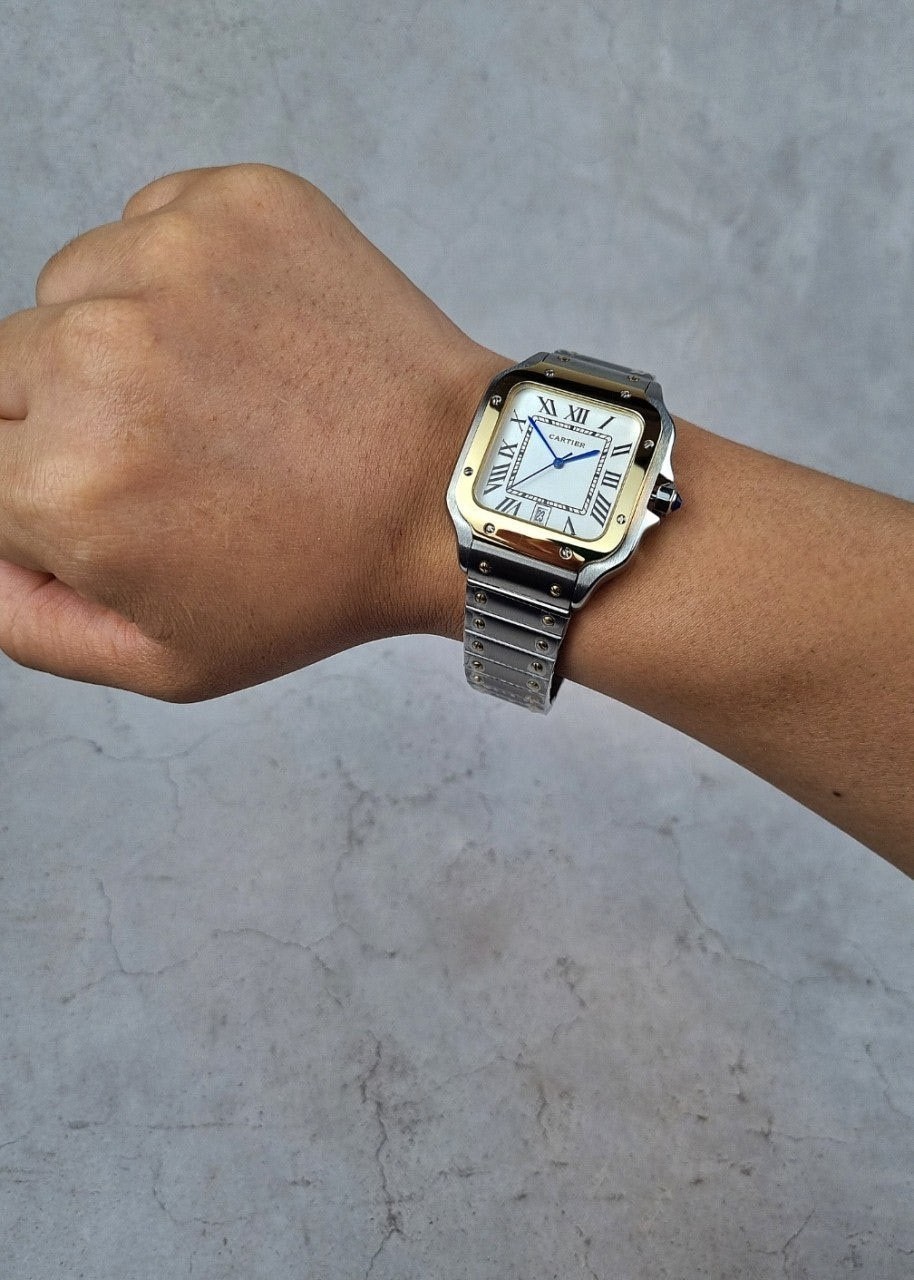 이번에 소개해드릴 시계는 까*** 산토스콤비 화이트다이얼 모델입니다. 왕의 보석함이라고 불렸던 까***는 시게보다 보석세공으로 원래는 유명했지만, 세계최초의 손목시계를 만들어낸 역사와 전통이 깊은 시계입니다. 세계최초란 타이틀을 가지고 있는 손목시계가 바로 이 까*** 산토스 모델인만큼 철길 브레이슬릿과 명성에 맞는 디자인을 가지고있습니다.