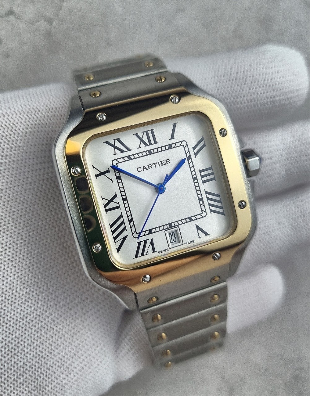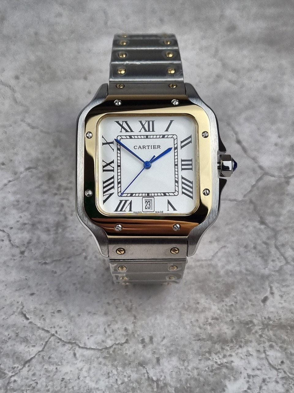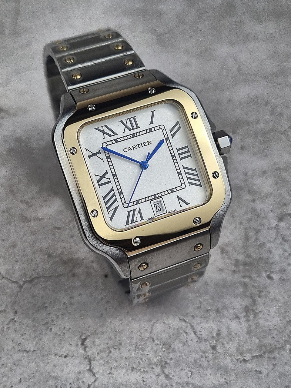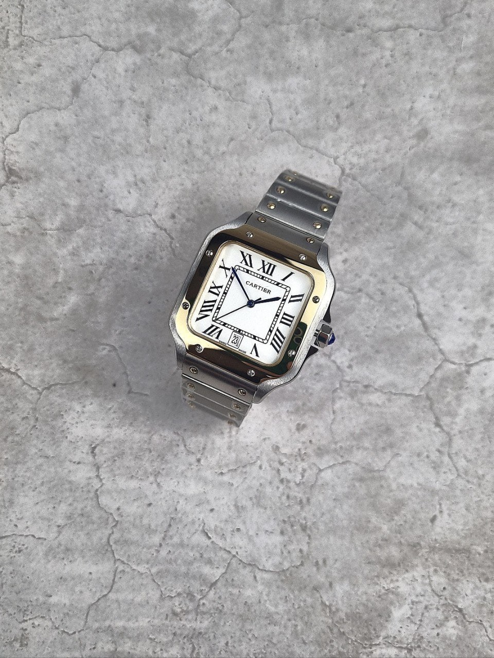 이번에 소개해드릴 시계는 까*** 산토스콤비 화이트다이얼 모델입니다. 왕의 보석함이라고 불렸던 까***는 시게보다 보석세공으로 원래는 유명했지만, 세계최초의 손목시계를 만들어낸 역사와 전통이 깊은 시계입니다. 세계최초란 타이틀을 가지고 있는 손목시계가 바로 이 까*** 산토스 모델인만큼 철길 브레이슬릿과 명성에 맞는 디자인을 가지고있습니다.