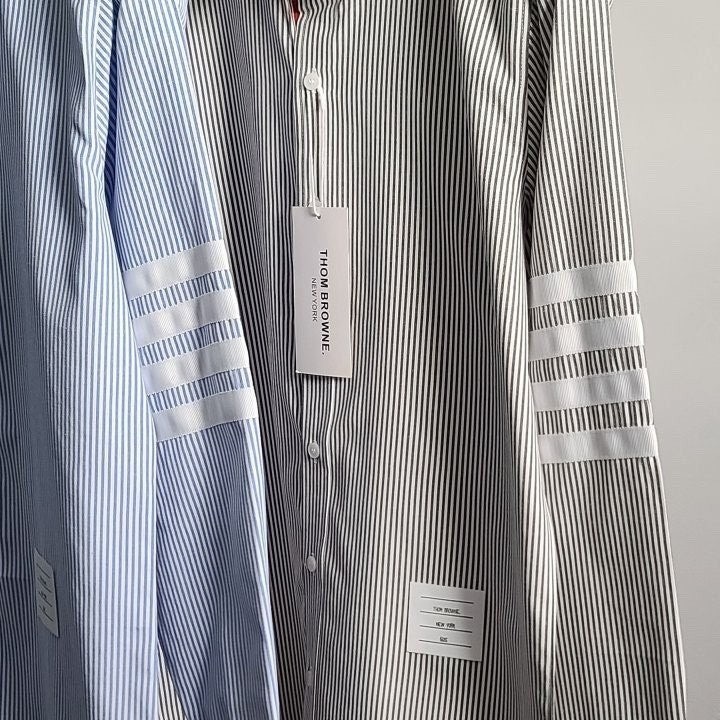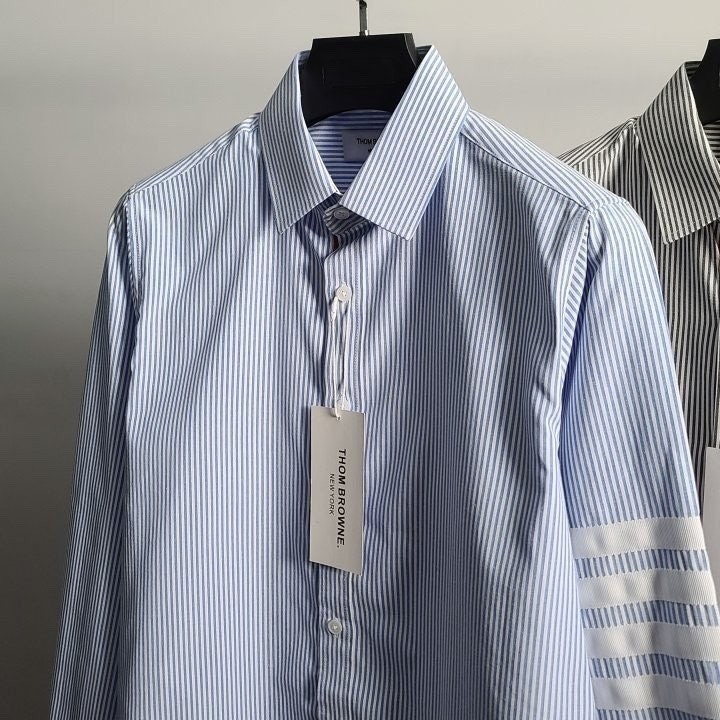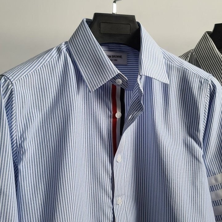 정장 이너 출근룩 어디에나 잘 어울리는 제품의 셔츠로 톰*사 만의 트레이드 마크인 소매 사선을 화이트완장으로 포인트를 준 제품 입니다.