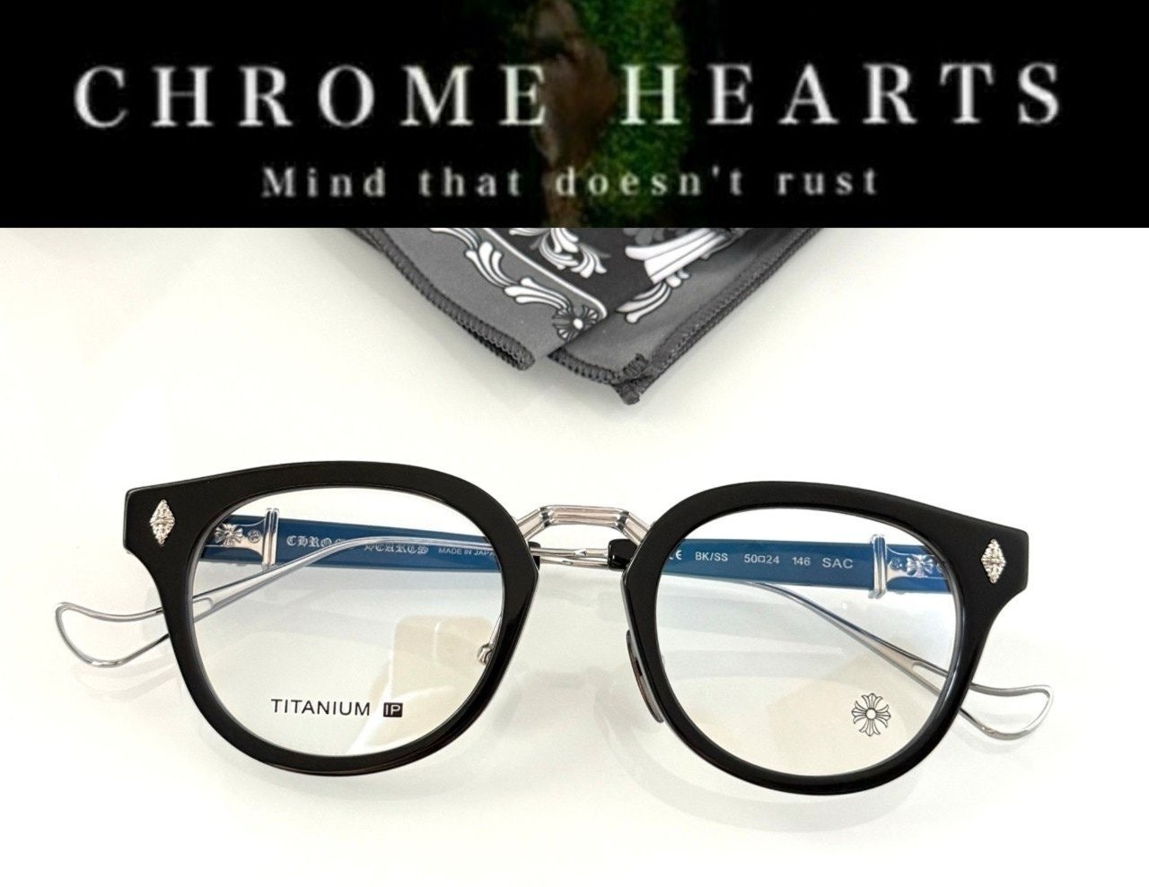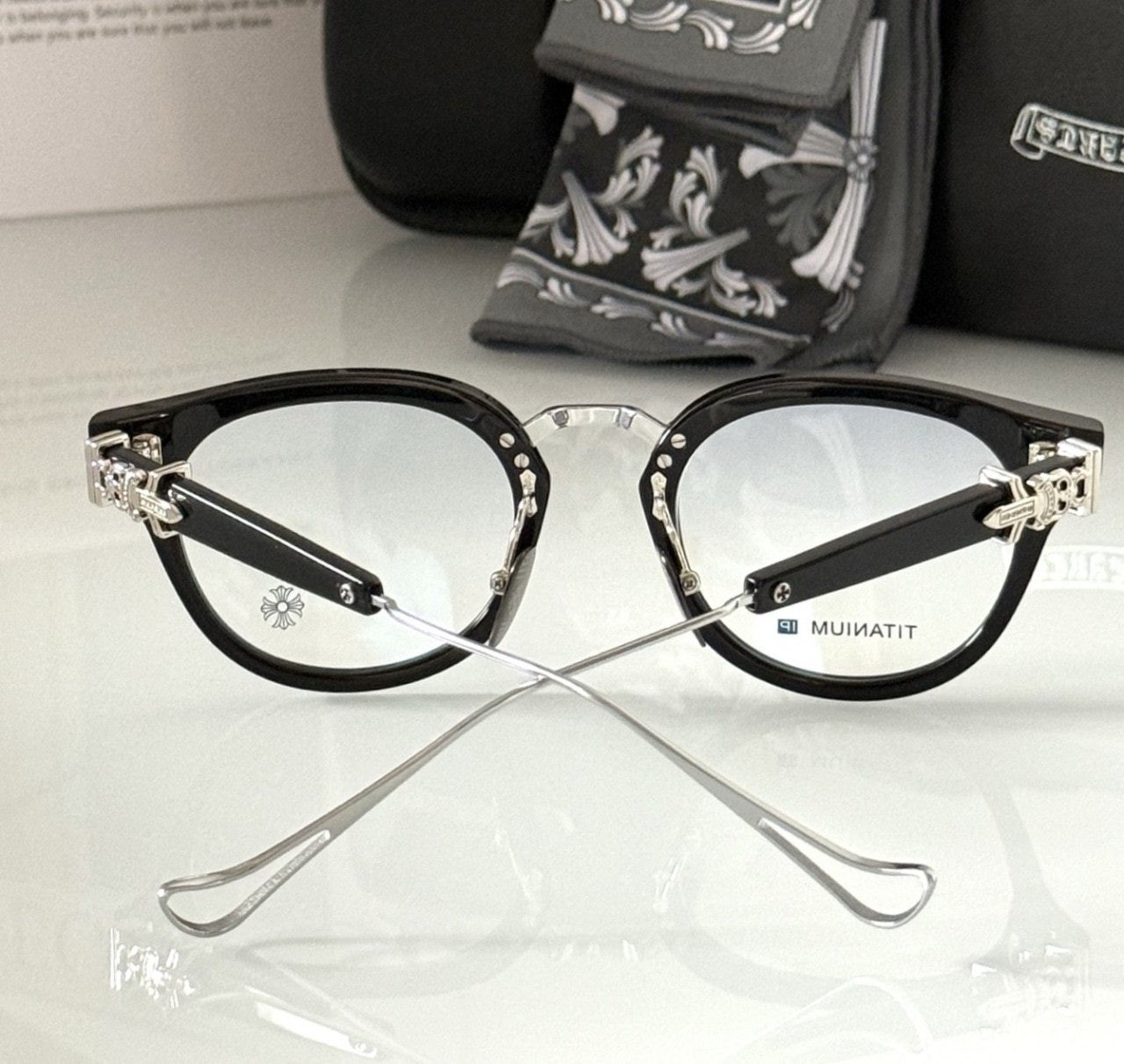 아세테이트 블랙과 티타늄 메탈이 결합된 콤비네이션