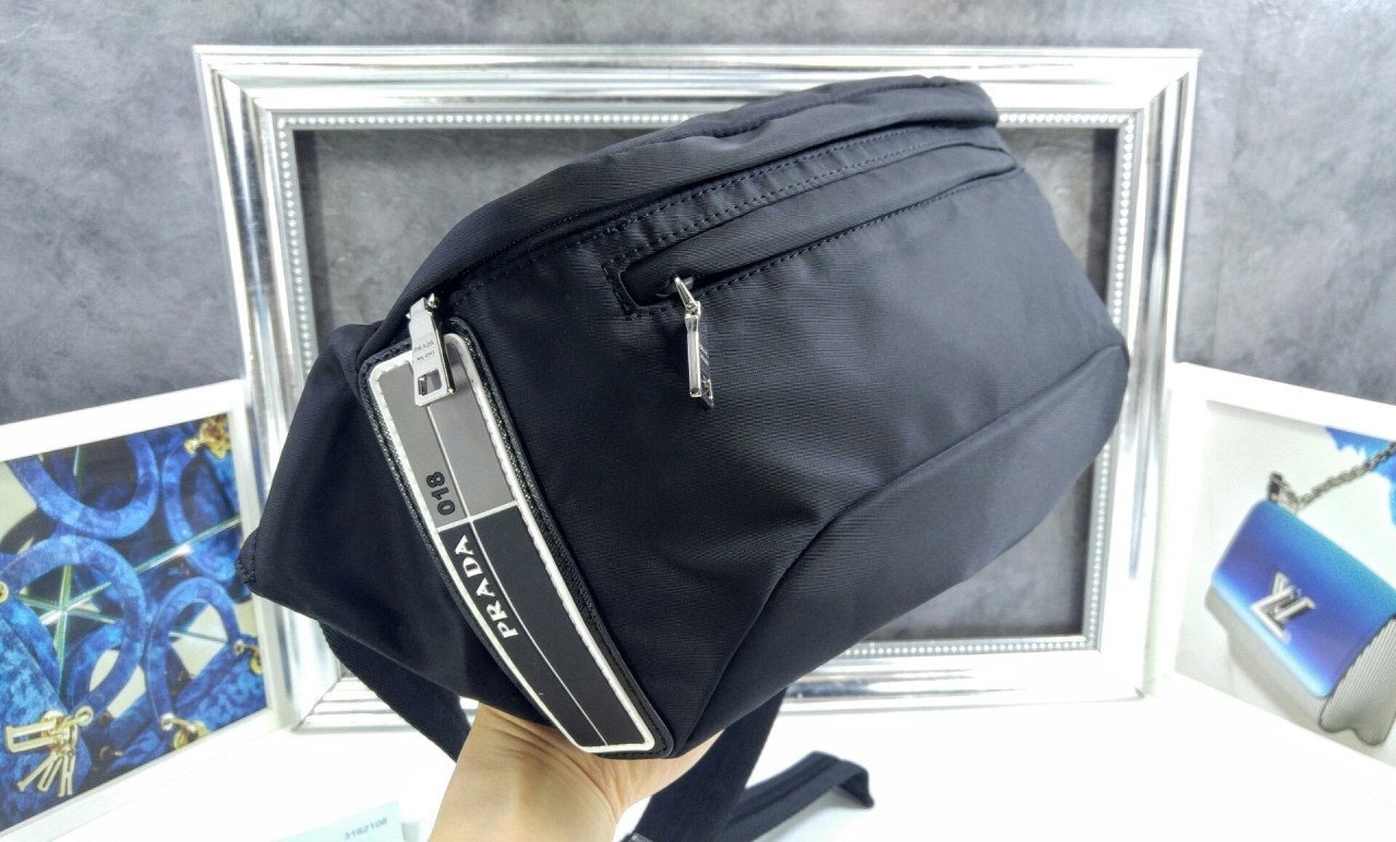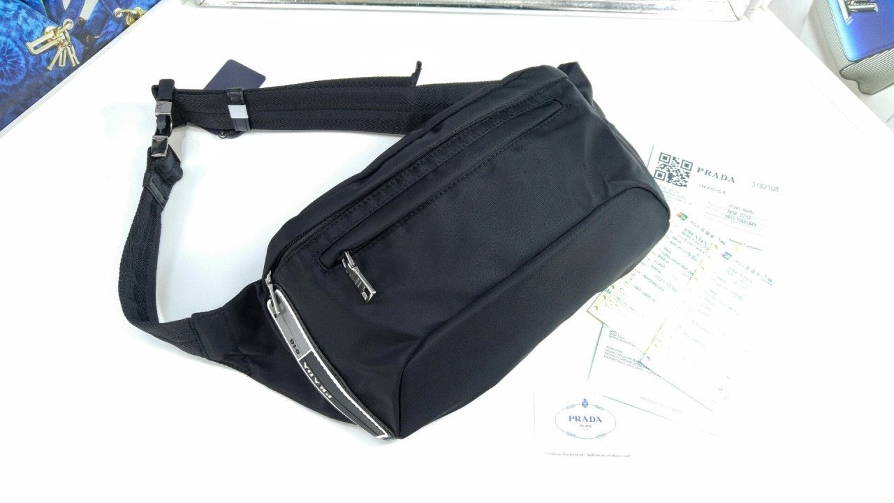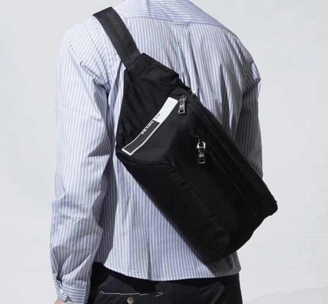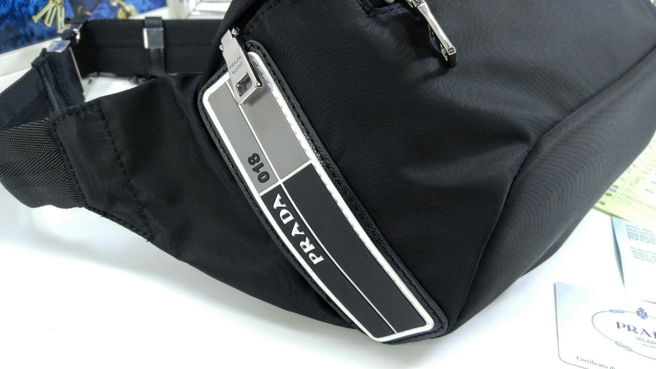 리나일론 개버딘 패브릭과 사피아노 가죽으로 제작한 숄더백