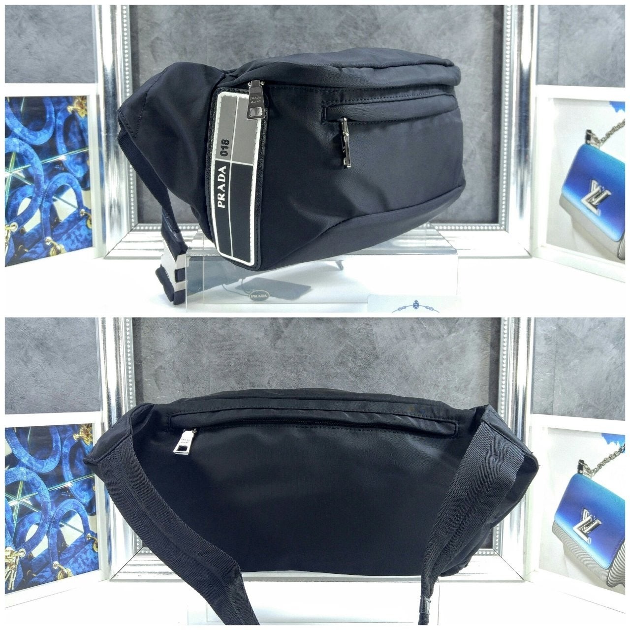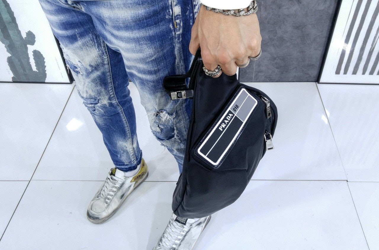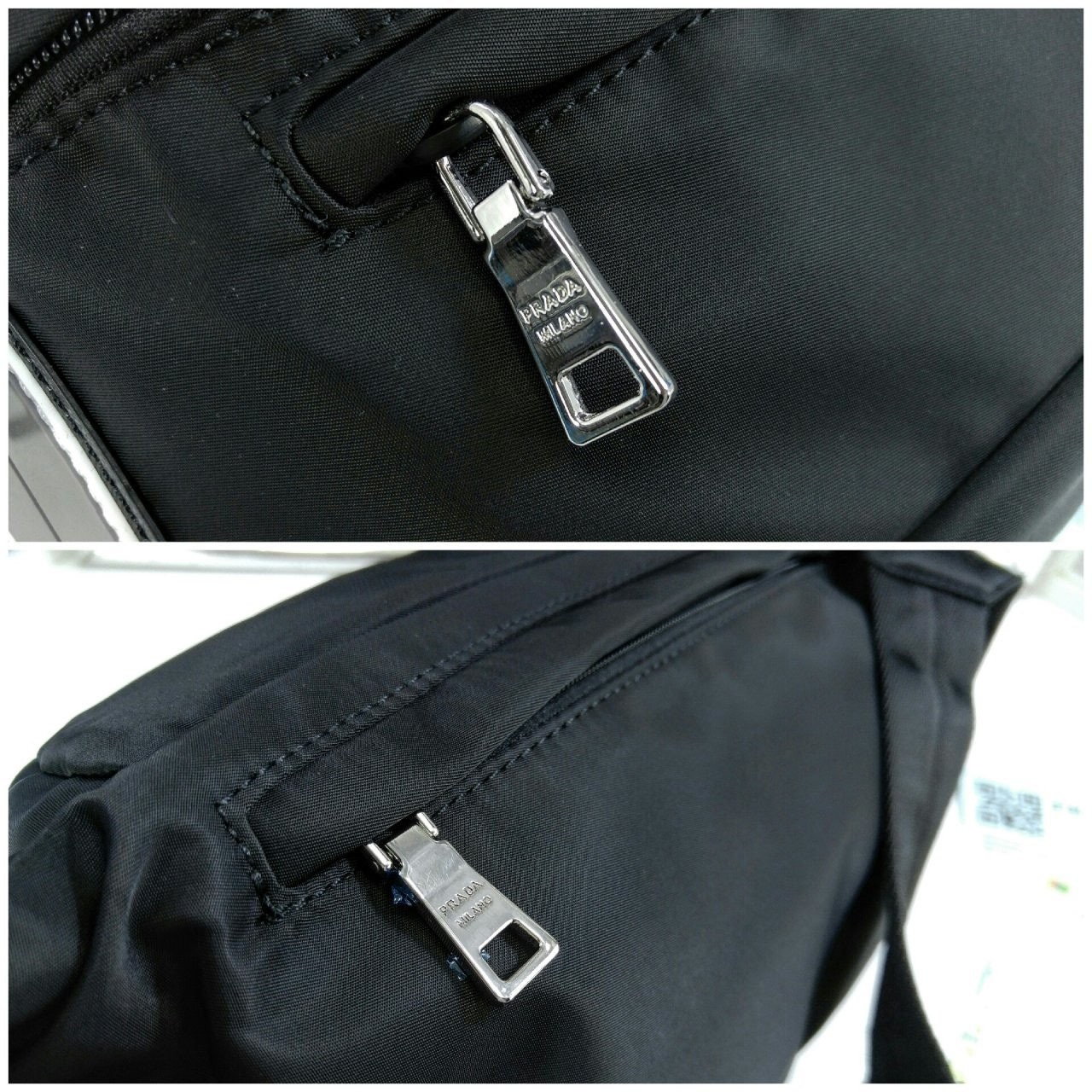 리나일론 개버딘 패브릭과 사피아노 가죽으로 제작한 숄더백