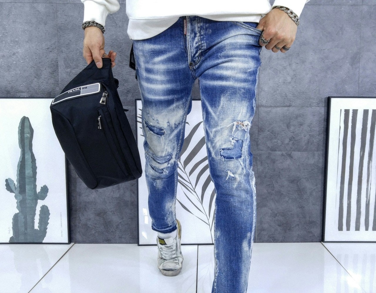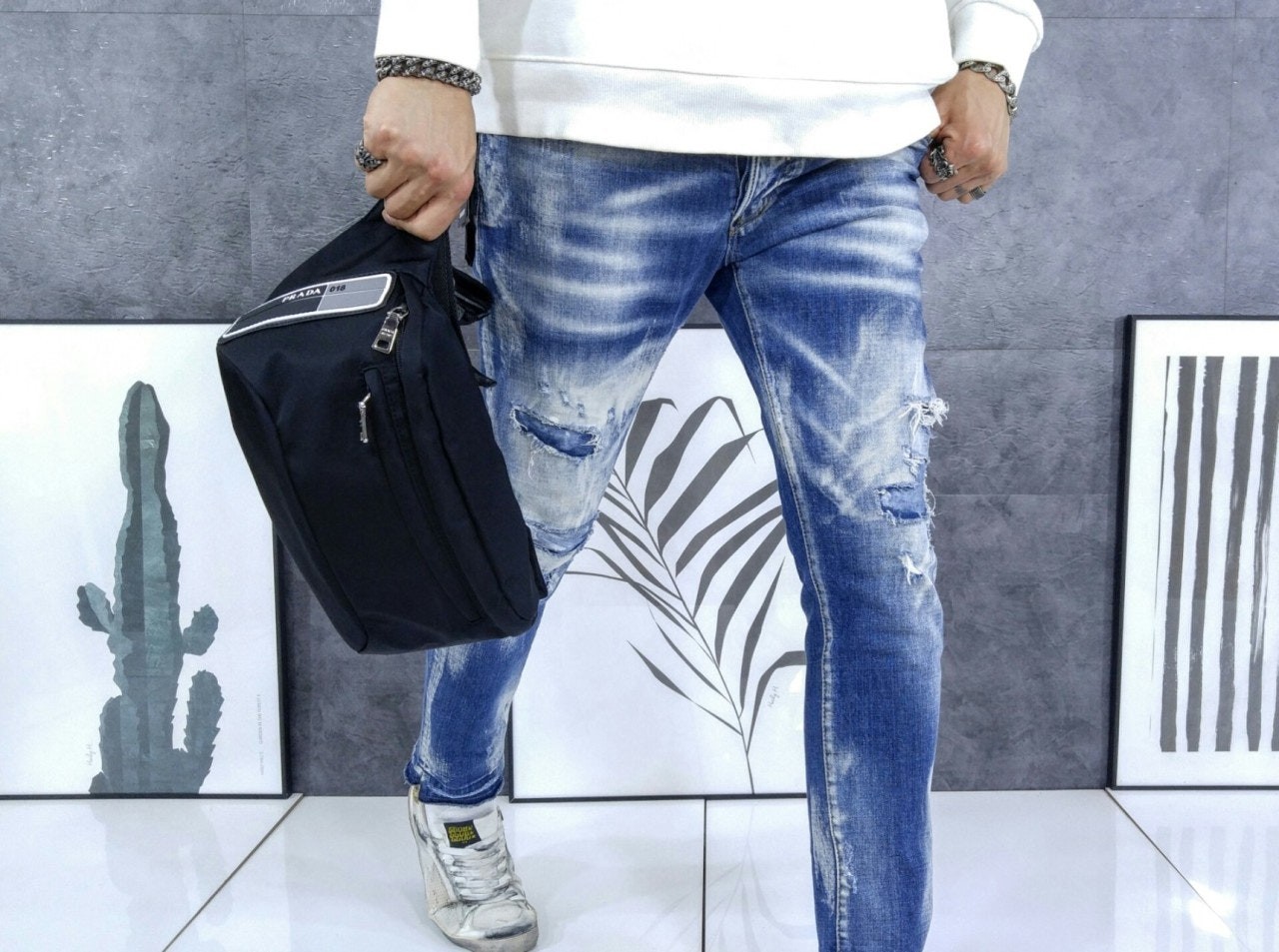• 크* 멀티레더 패치 흑청 슬림 일자진