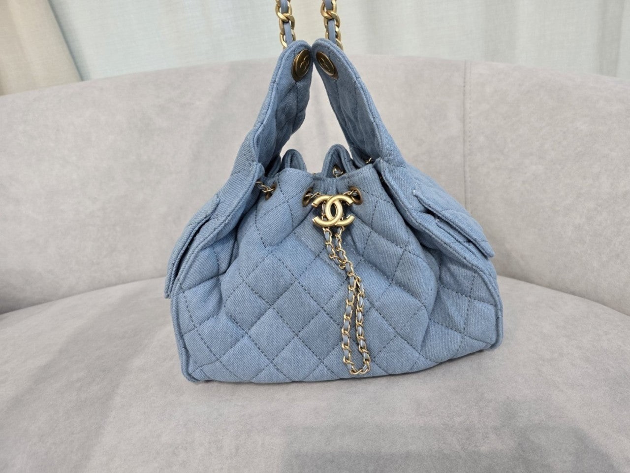 • 샤* 스터드 체인 버킷백 금장