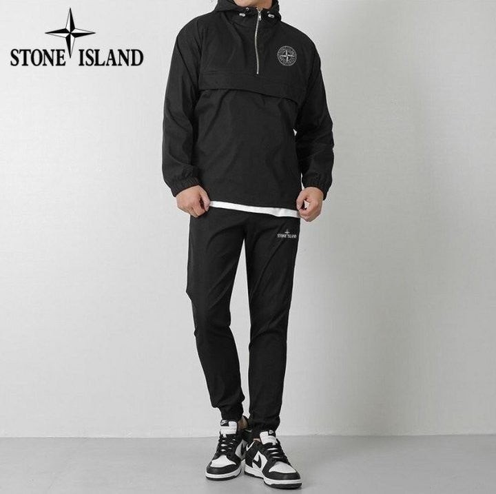 간절기에 입기 좋은 두께의 후드 아노락과 조거팬츠 세트입니다