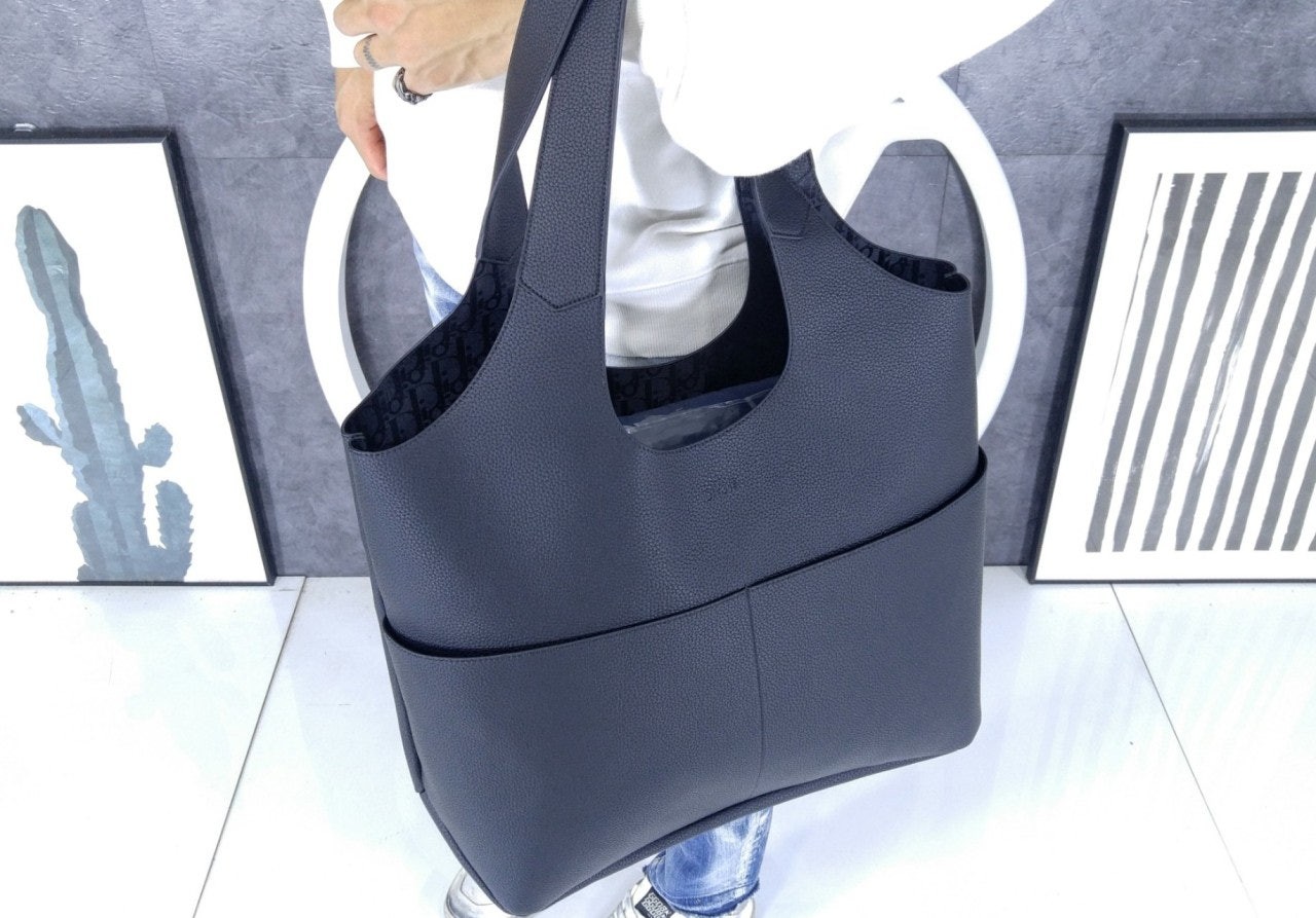 2025 가을 시즌에 새롭게 선보이는 세련된 타임리스 스타일의 Di*r Privé 토트백입니다. 블랙 컬러의 Di*r Icons 송아지 가죽 소재로 제작되었으며, 앞면에 섬세하게 새긴 Di*r 시그니처 디보싱이 돋보입니다. 앞면의 슬립 포켓 2개와 Di*r Oblique 베이비 스웨이드 안감으로 된 내부의 넉넉한 수납공간 및 탈착식 지퍼 파우치가 특징입니다. 톤온톤 가죽 탑 핸들을 활용해 숄더백으로 연출하기 좋습니다.
