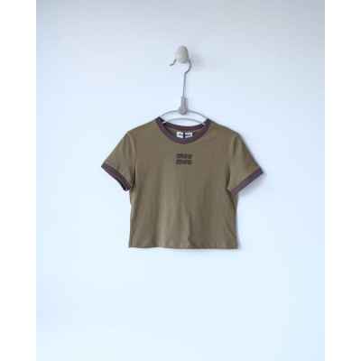 •(칩 탑재 최상급) MI* MI* SS26 로고 패치 자수 숏 슬리브 티셔츠 입니다. 매장 구매 후 제작, 원단과 동일 사양으로 제작된 제품입니다. 원단은 전면 원판 그대로 제직한 100% 면 평직(저지) 소재를 사용했으며, 넥의 와인 컬러 리브와 가슴의 MIU 자수 패치 원단은 모두 맞춤 염색 처리하여 색 차이가 전혀 없는 0색차 버전입니다. 가슴의 MIU 로고 패치는 레이저 컷팅으로 정교하게 제작한 후, 자수기로 가장자리 둘레를 따라 봉제하여 완성하였고 착용 시 까슬거림이 없으며 뒷면에 실밥이 남지 않도록 마감했습니다.